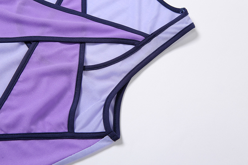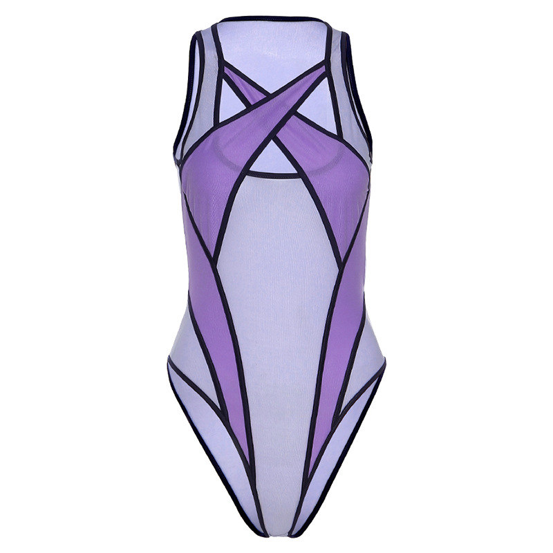 Vêtements d'été pour femmes, t-shirt patchwork à contraste de couleurs, body sexy en maille transparente et coupe ajustée pour femmes