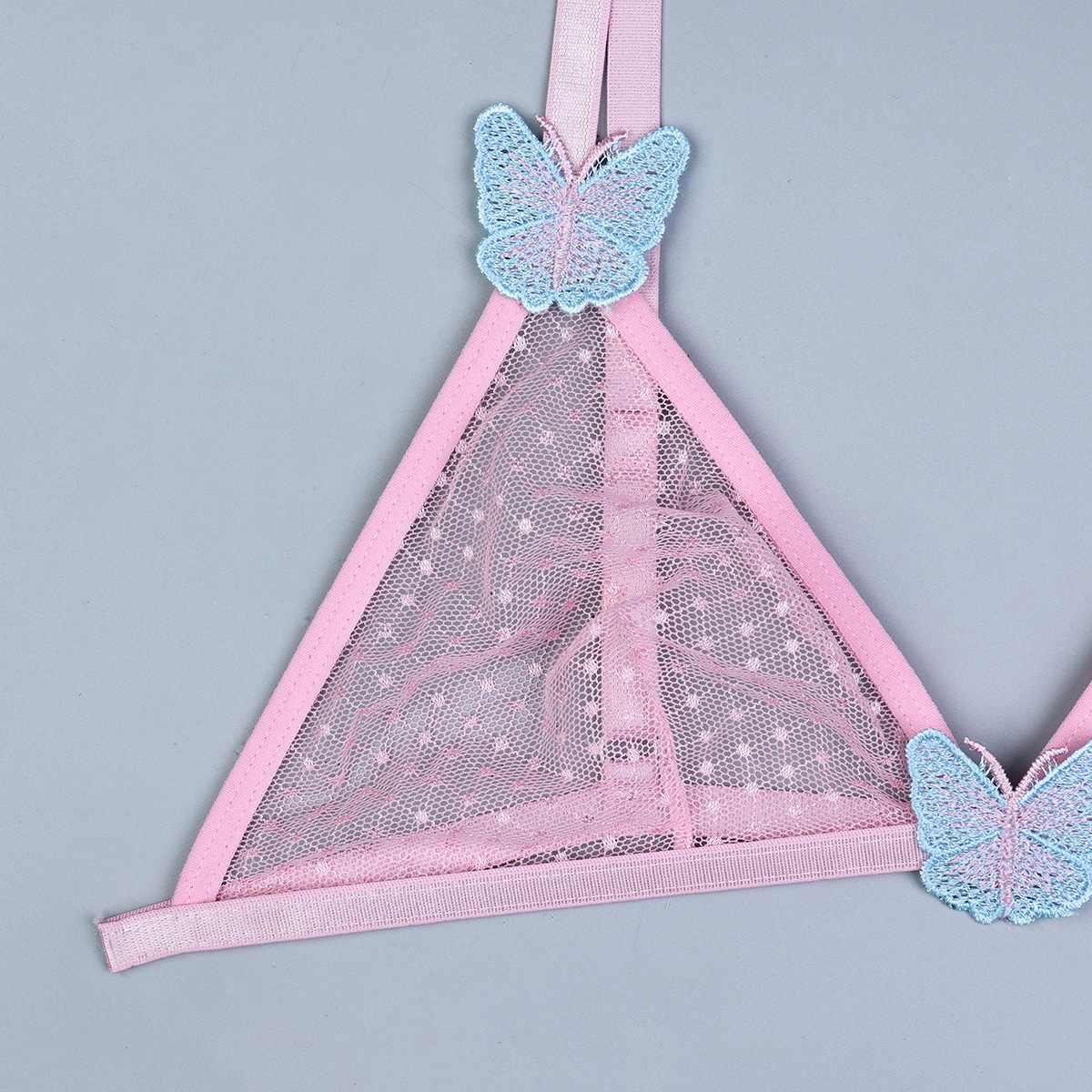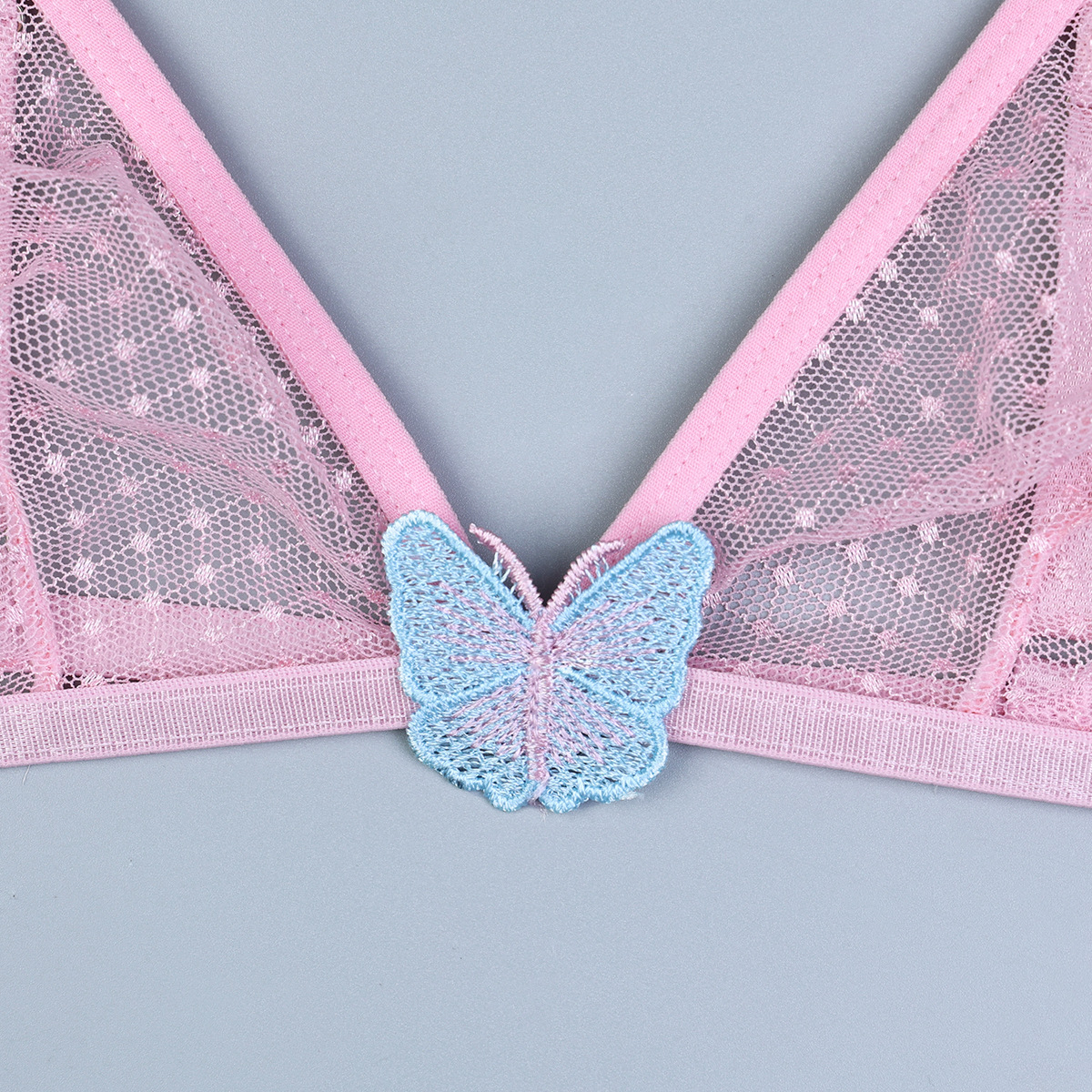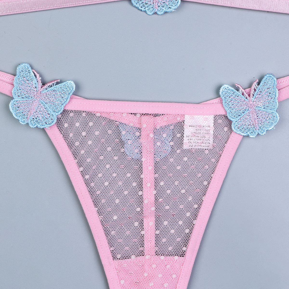 Sous-vêtements roses deux pièces avec broderie papillon tridimensionnelle, lingerie sexy