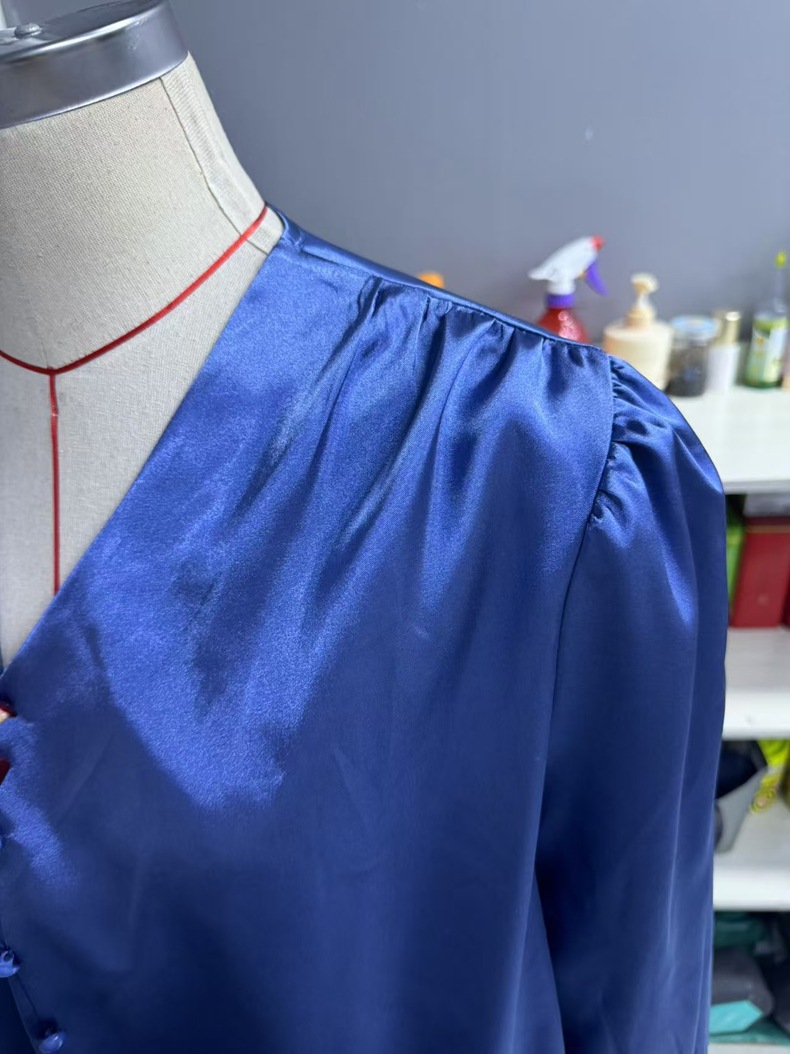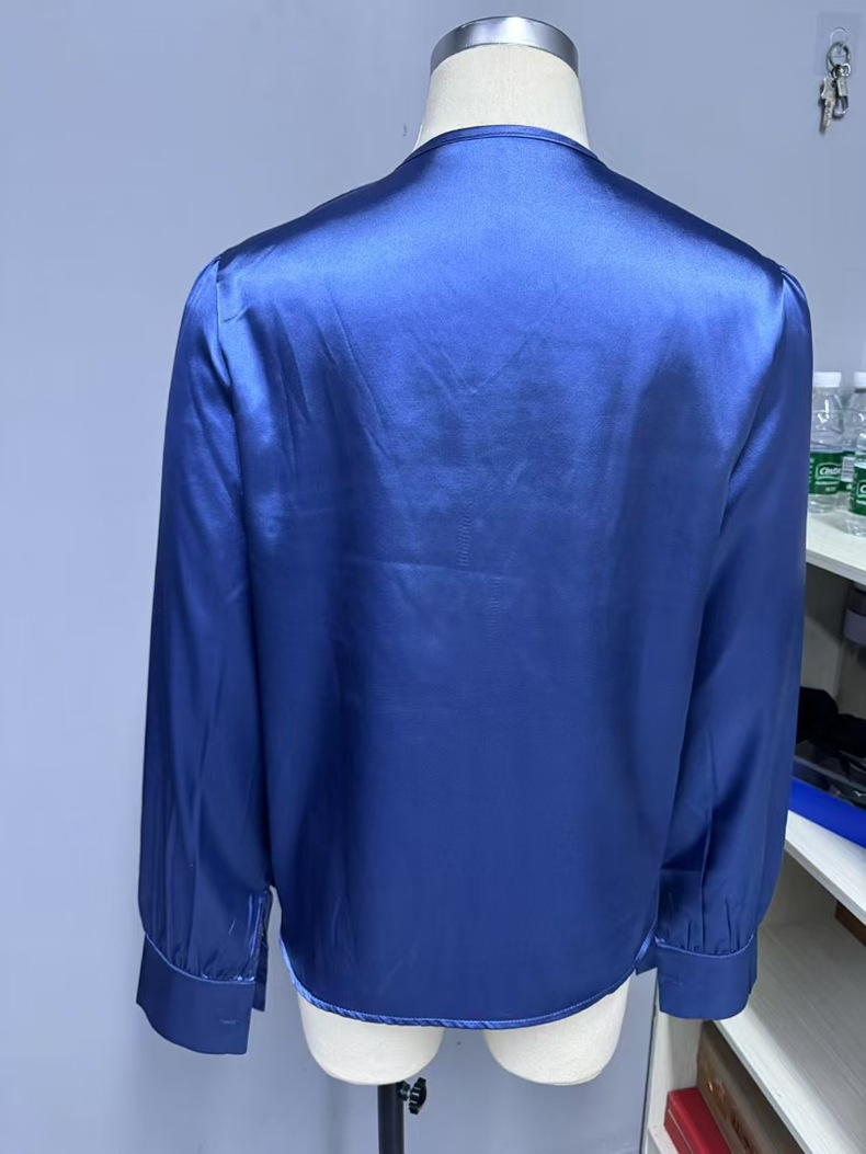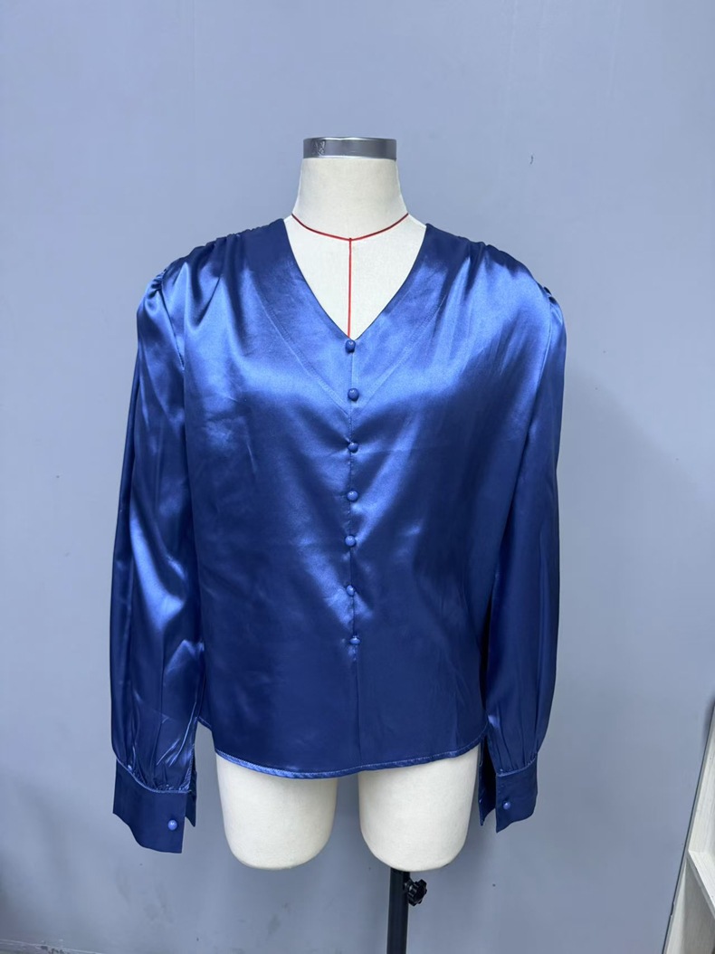V neck Pullover Top Shirt Women Satin Office Top Women Clothing Direct
