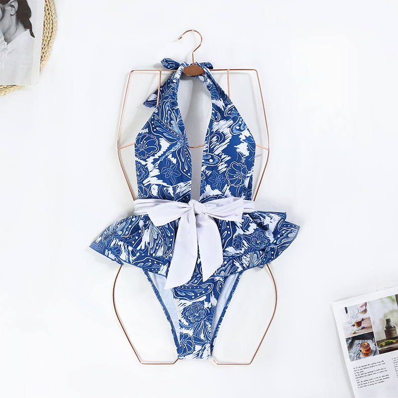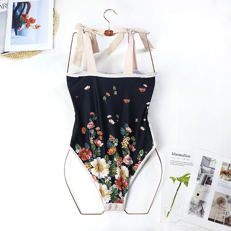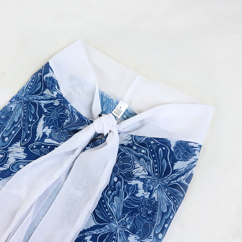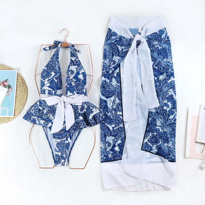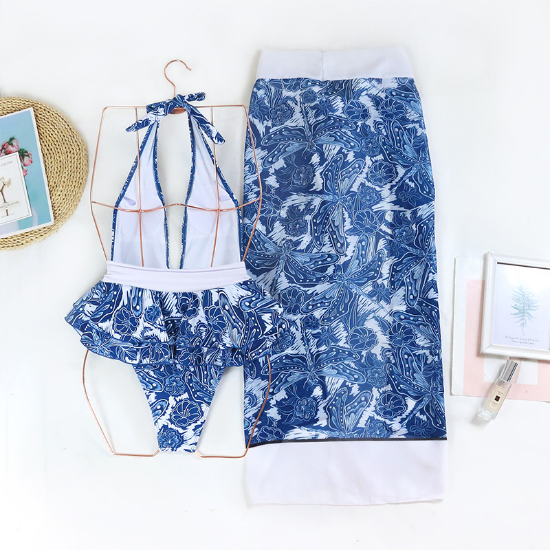 Maillot de bain imprimé vintage, maillot de bain conservateur pour femmes, ensemble jupe de plage imprimé en polyester