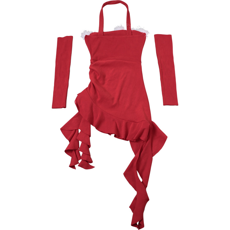Robe asymétrique irrégulière à manches longues et col tube sexy pour femme, idéale pour Noël et l'hiver