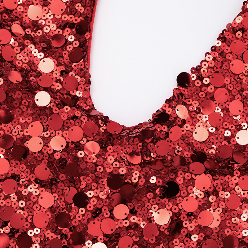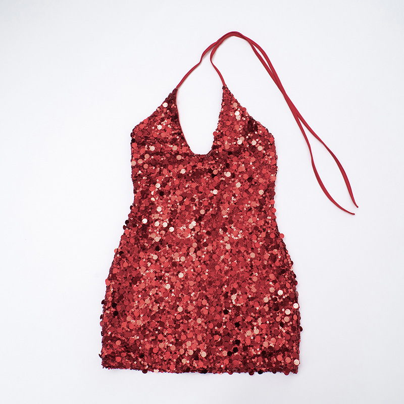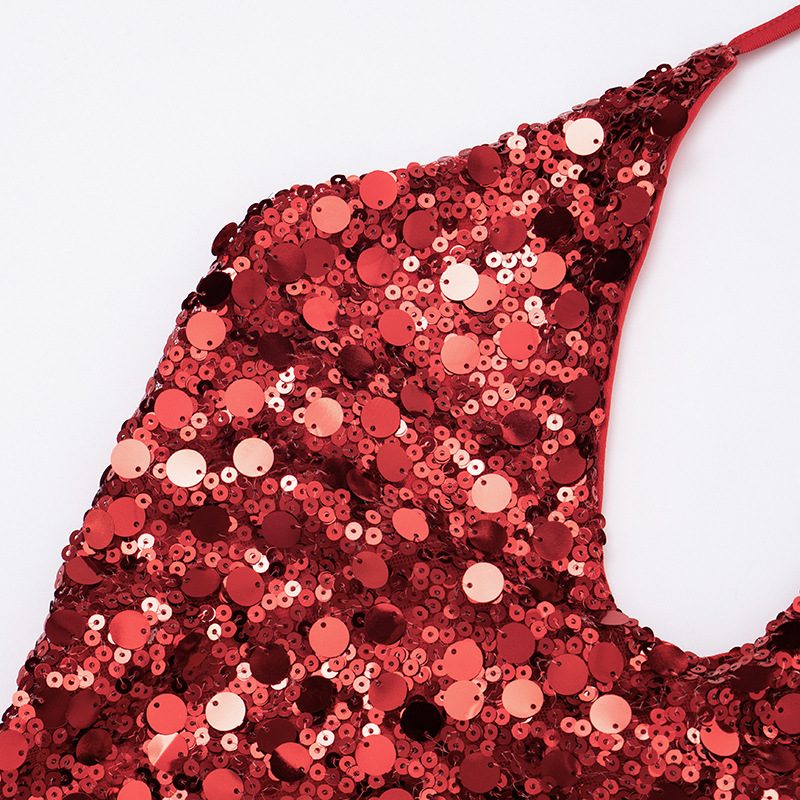 Women Autumn Elegant Slim Fit Sequined Sleeveless Strap Halter Short Dress
