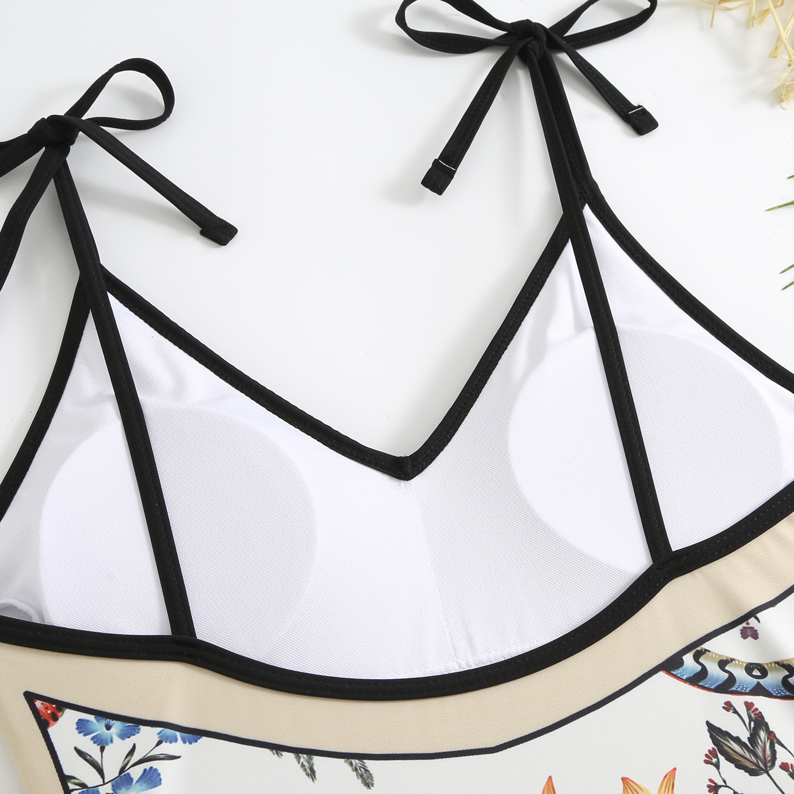 Maillot de bain une pièce pour femme, coupe slim, style rétro, noué, en mousseline de soie