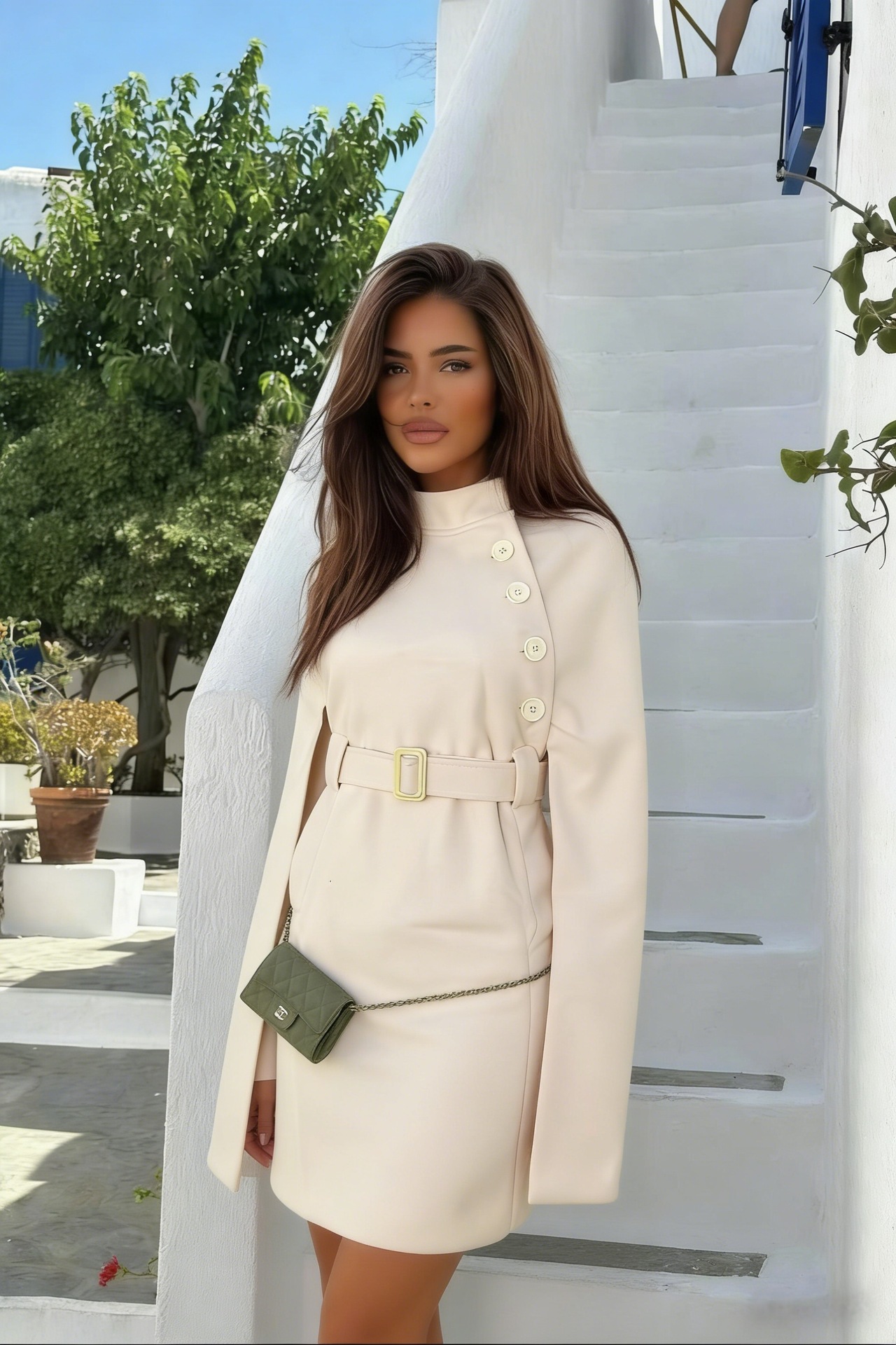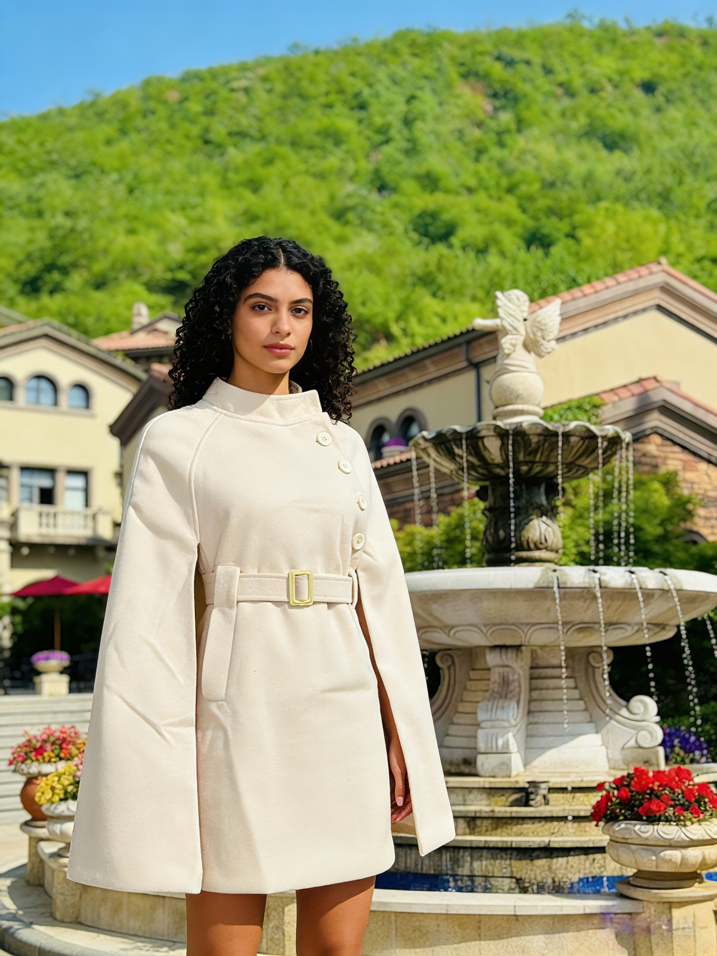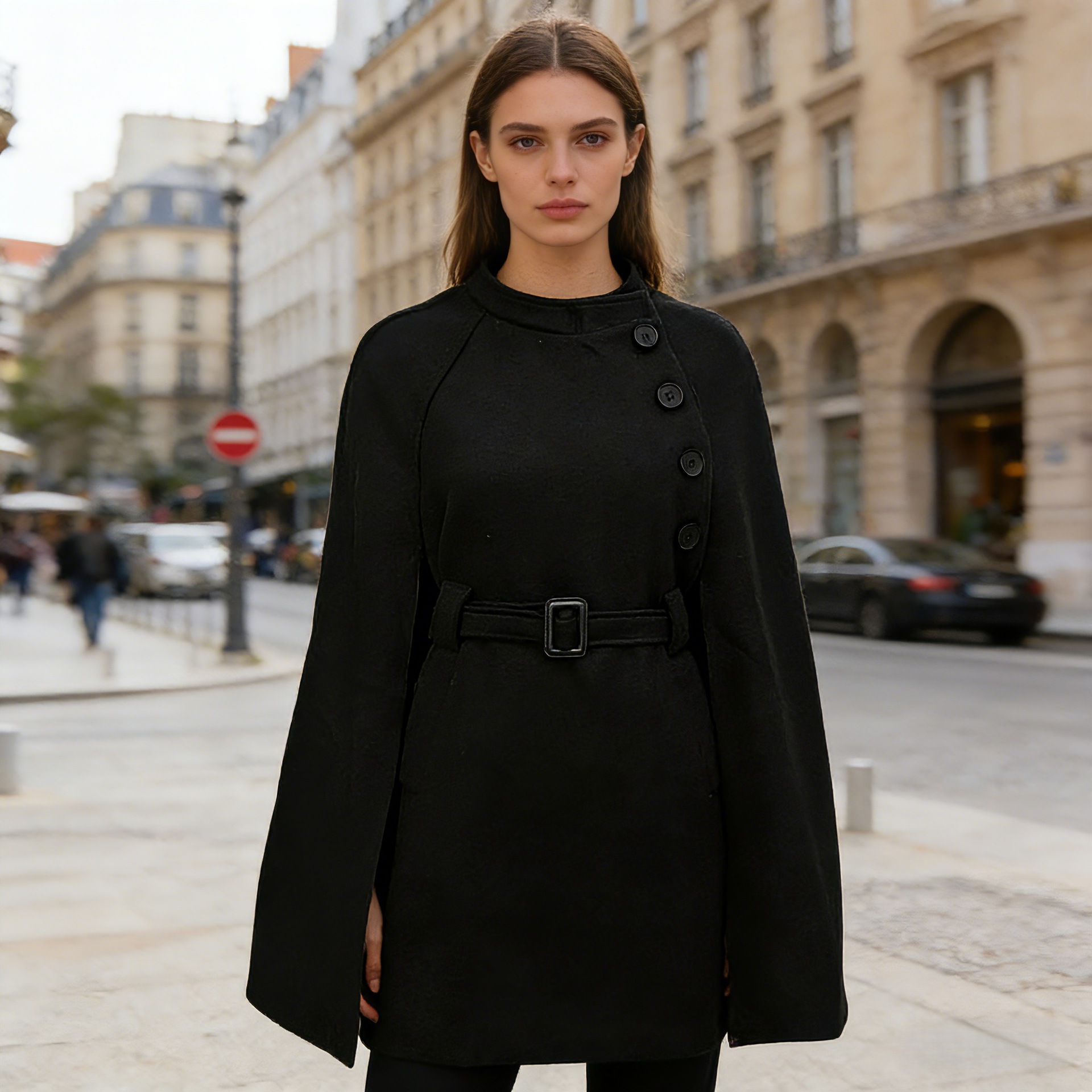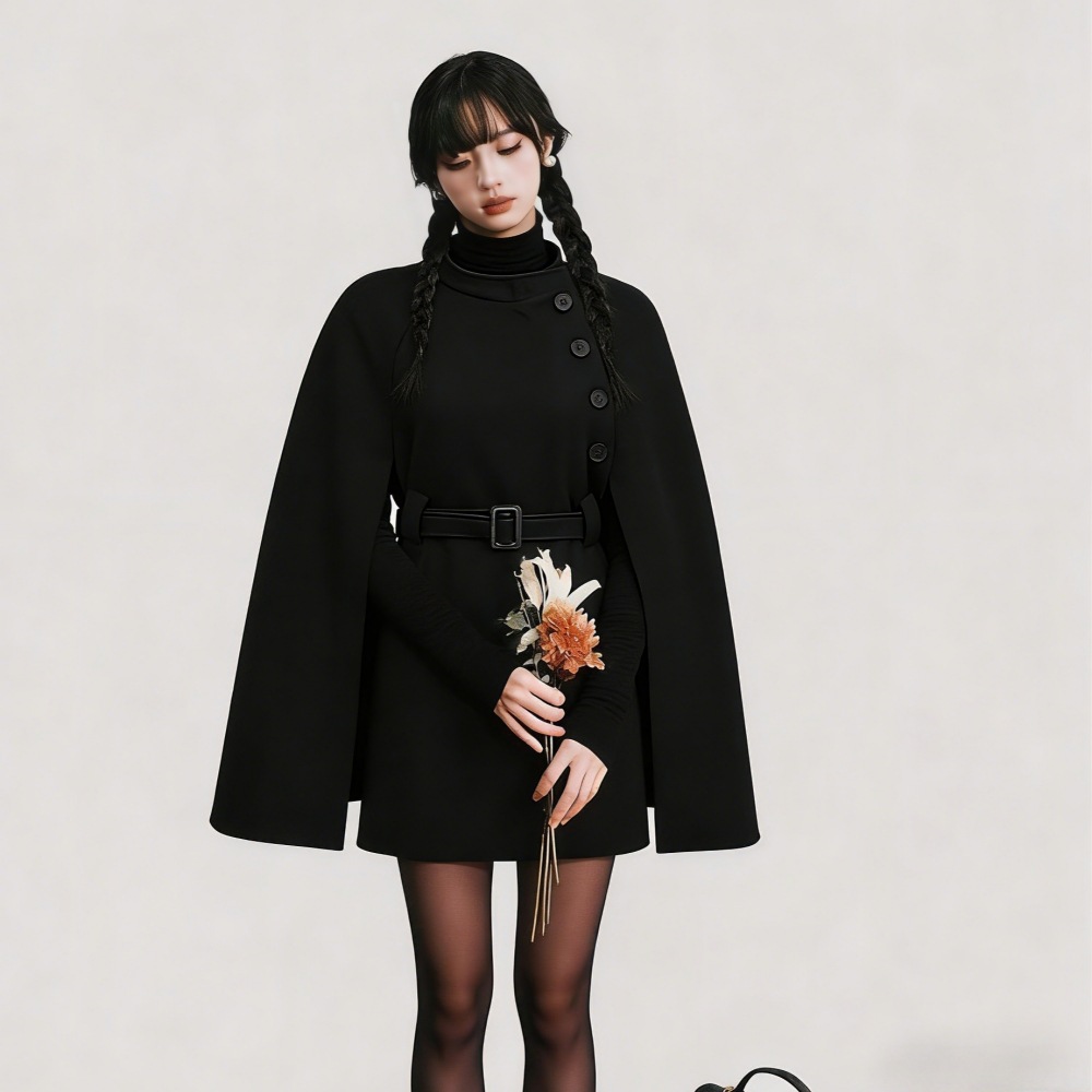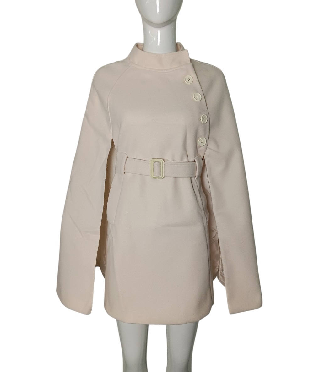Woolen Coat Cotton Padded Women Autumn Winter Woolen Overcoat Sense Cape Shawl Trench Coat