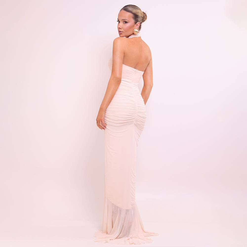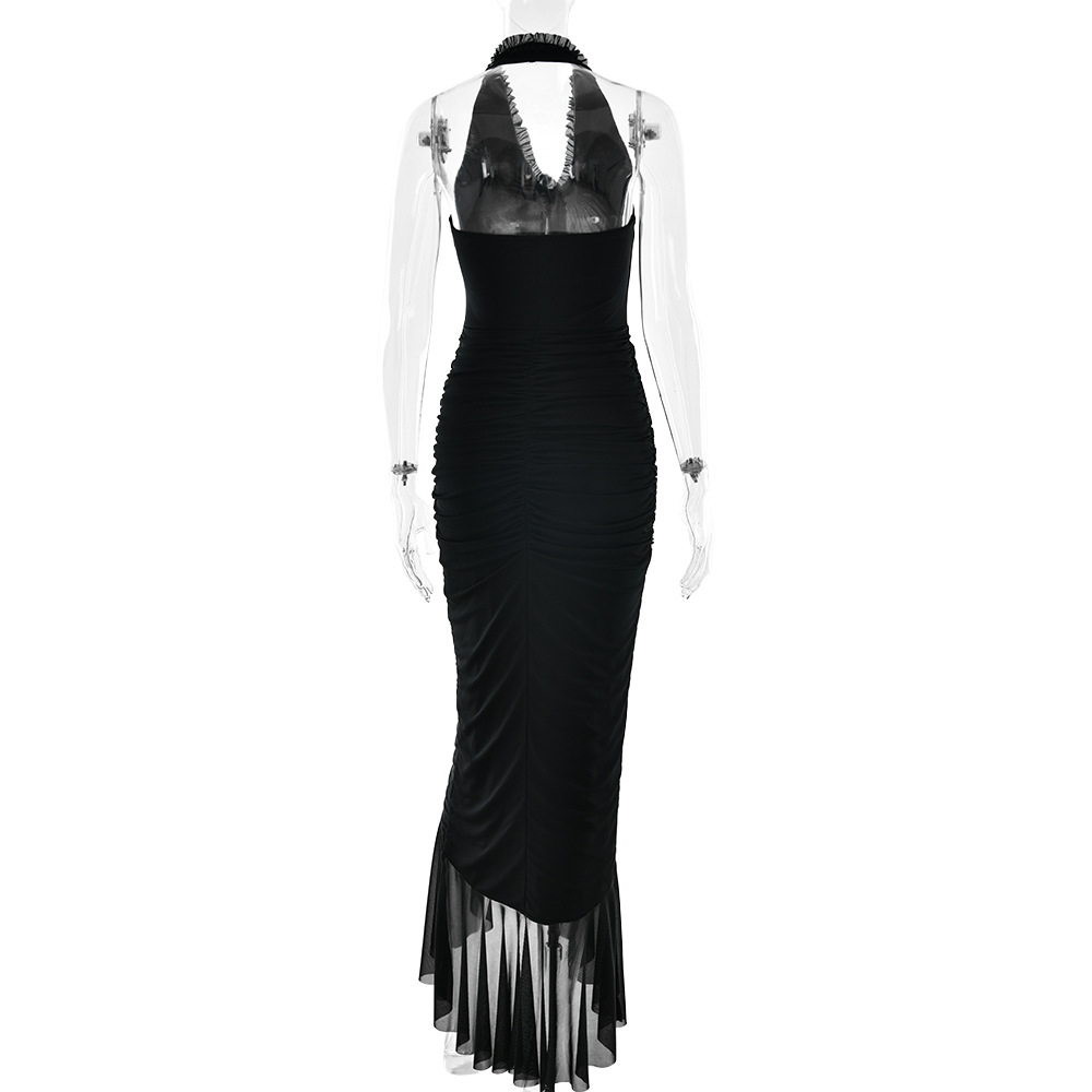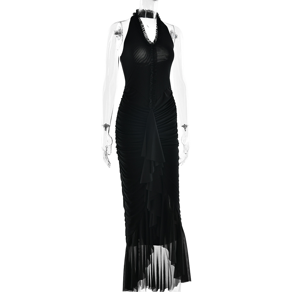 Arrival Sexy Halter Dress Summer Deep V Plunge Ruffled Slit Pleated Dress