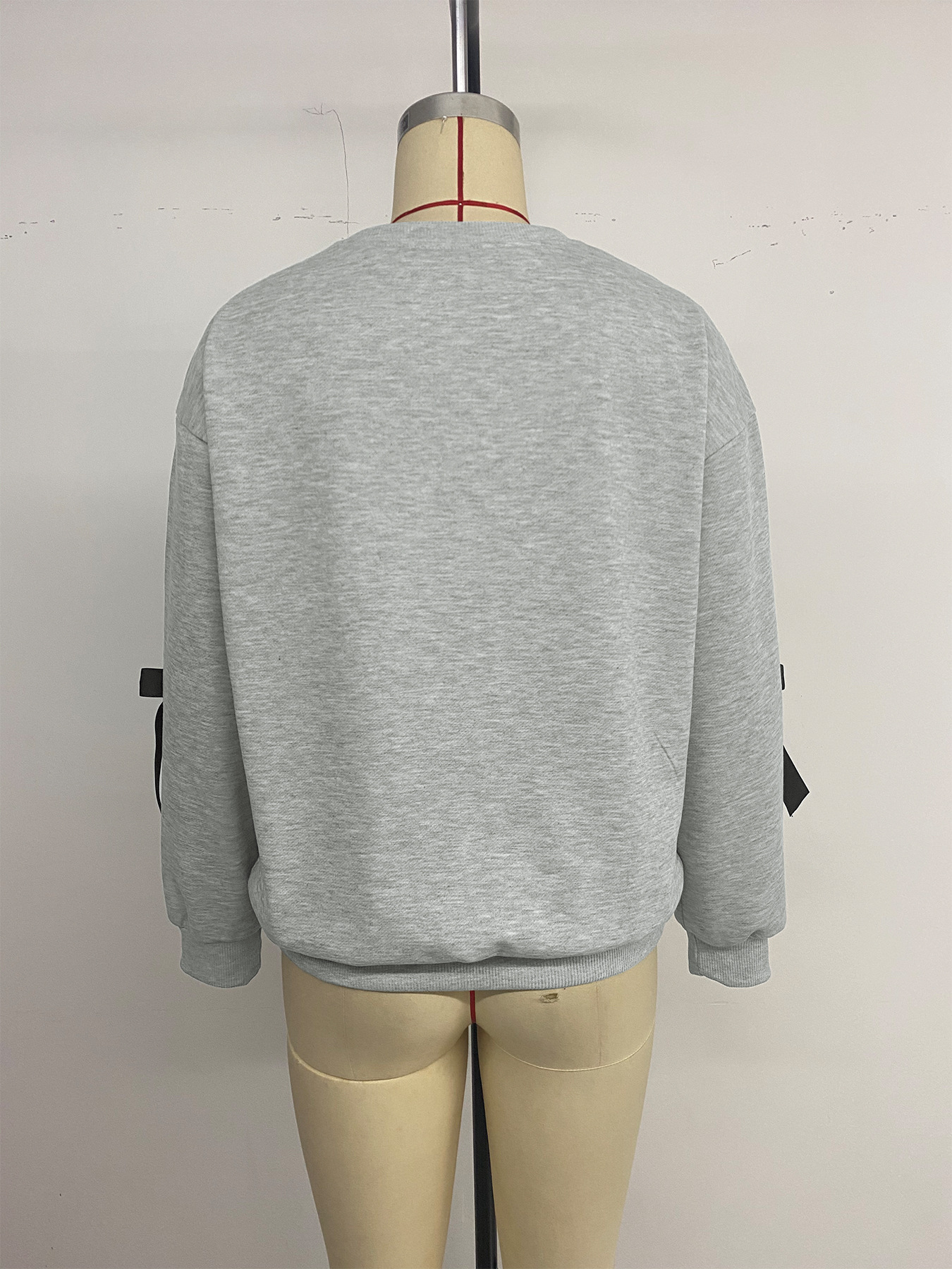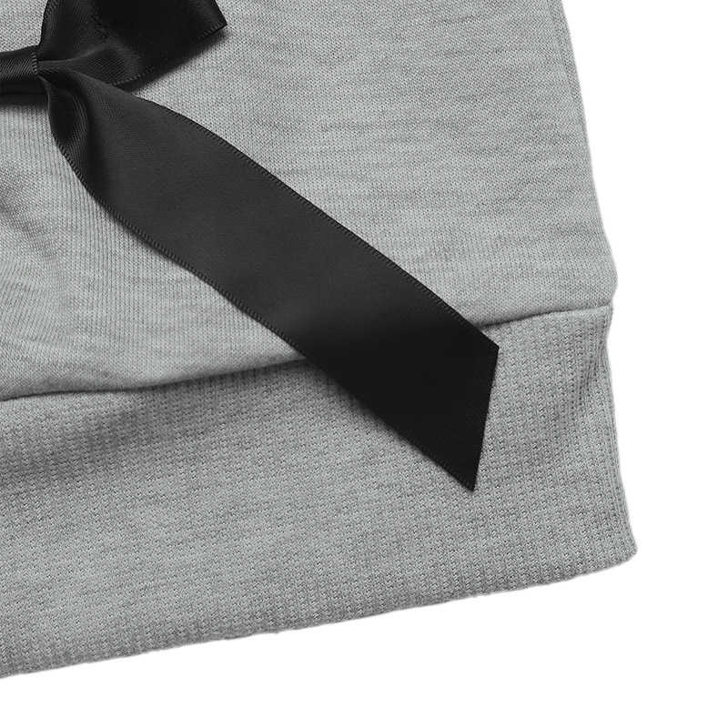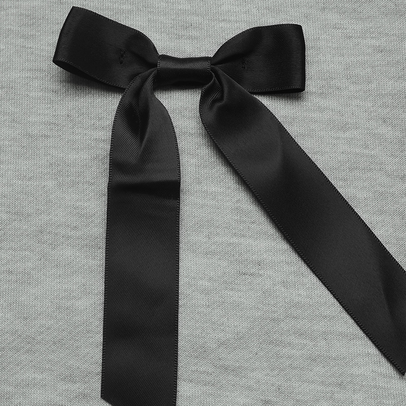 Autumn Casual Sweet Top Bow Decoration Gray round Collar Sweater Women