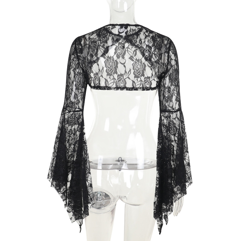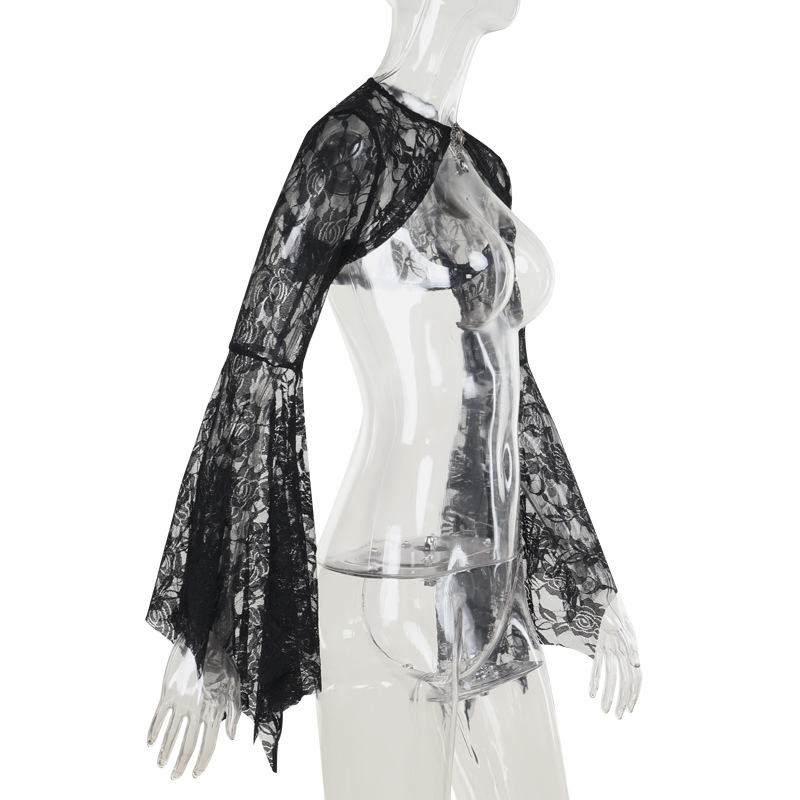 Autumn Elegant Lace Batwing Sleeve Irregular Asymmetric Overhaul Waistcoat Top Women