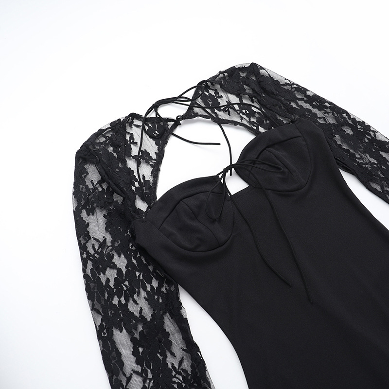 Autumn Elegant Sexy Slim Lace Long Sleeve Hip Wrapped Dress Women