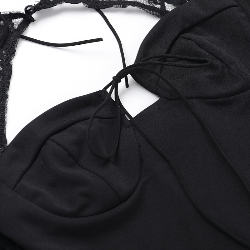 Element: Lace/Tulle/Fishnet,Backless,Patchwork,Tie