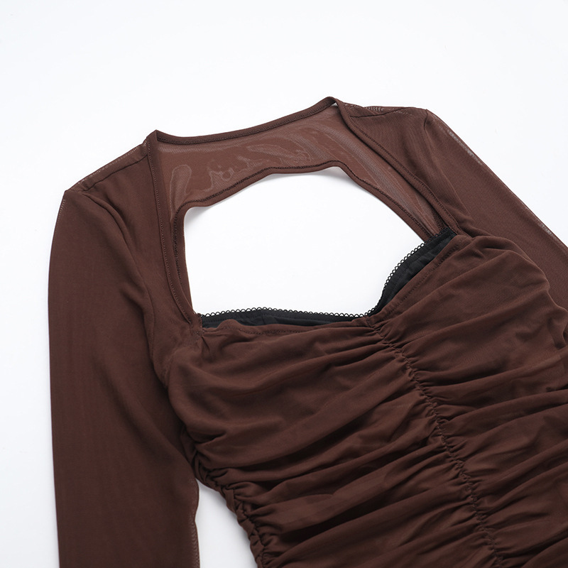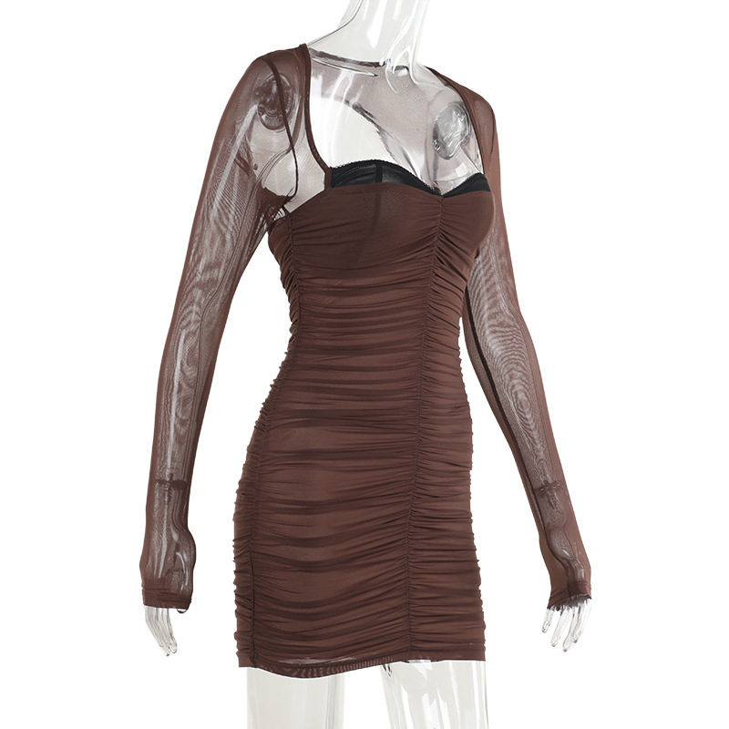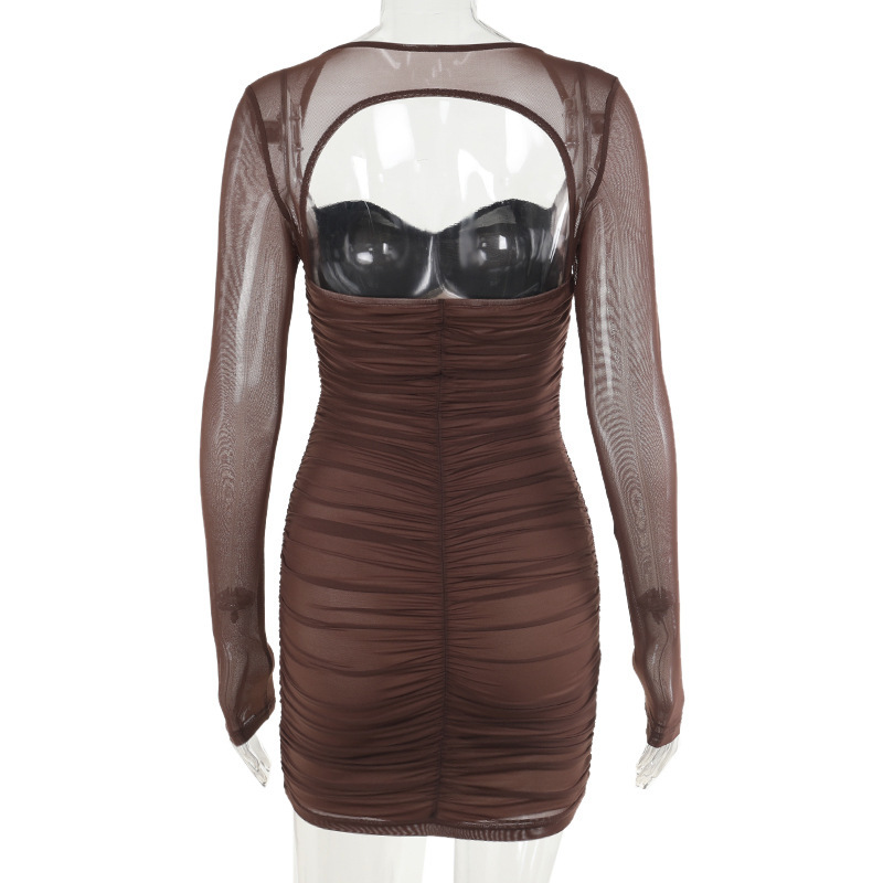 Autumn Sexy Dress Fashionable Elegant Slim Fit Pleated Hip Dress Women