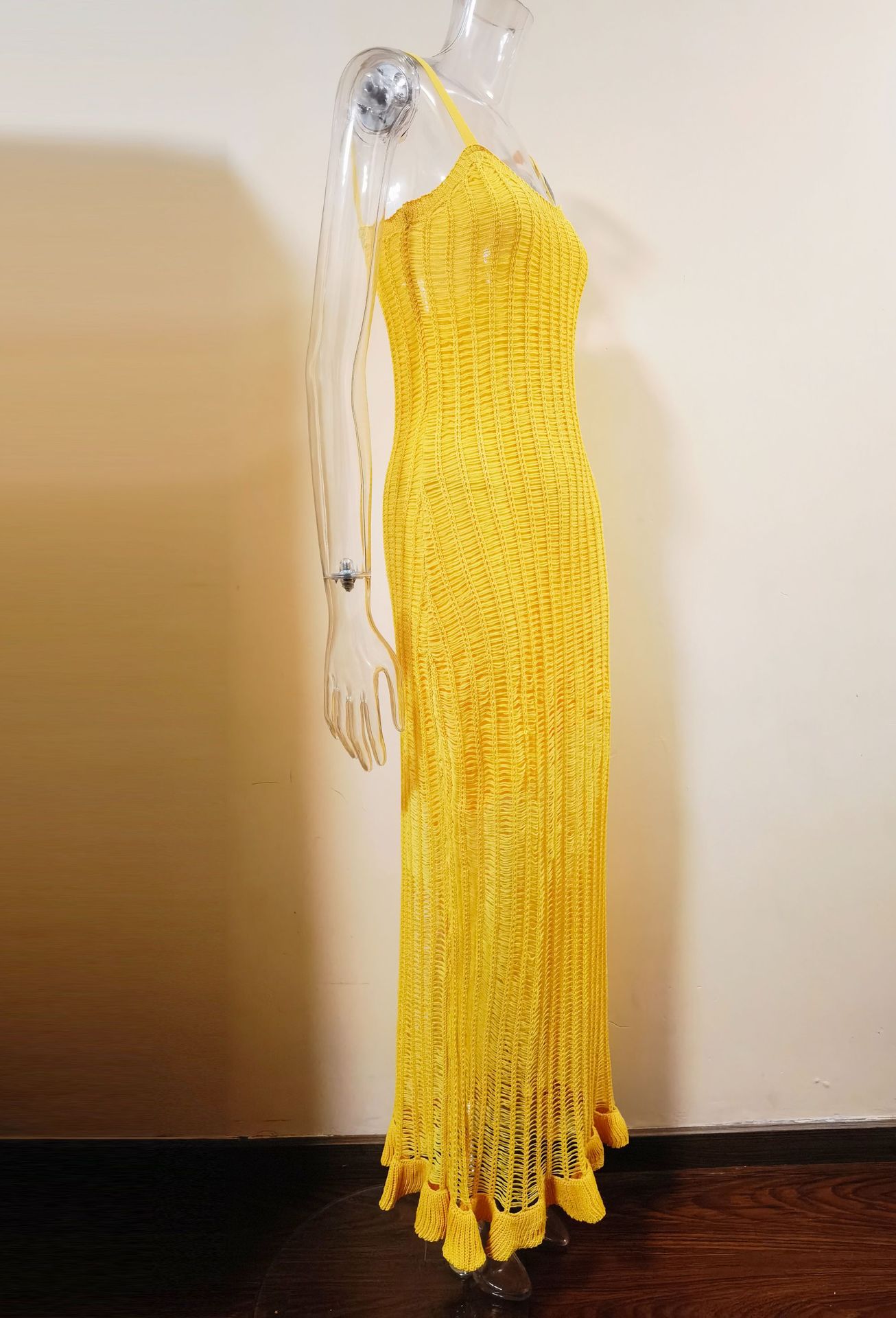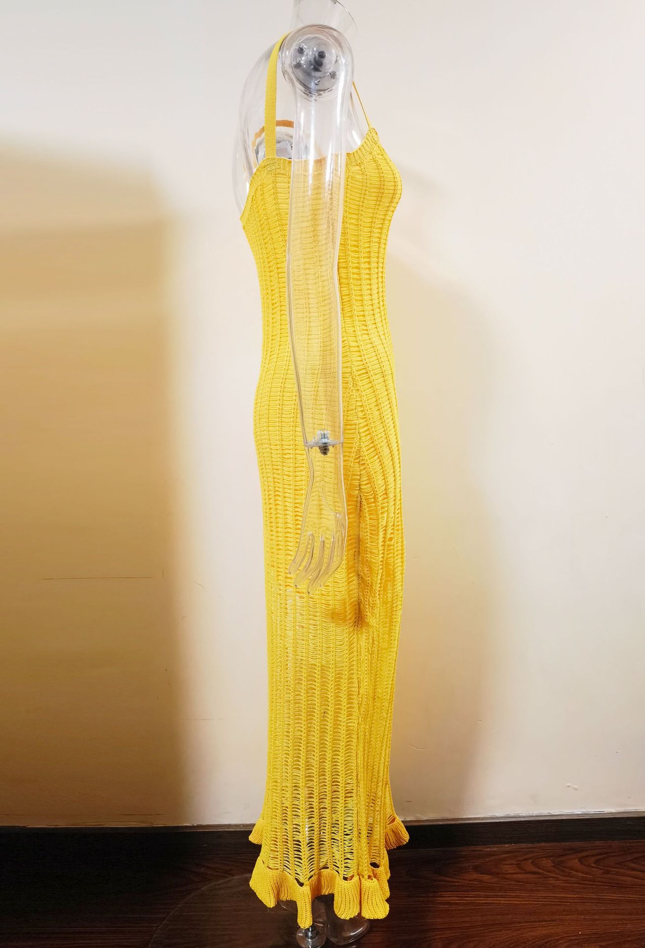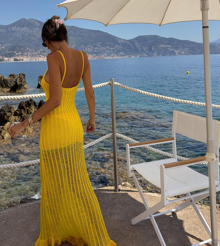 Autumn Winter Sexy Sheath Cutout Sling Ruffled Long Woolen Dress