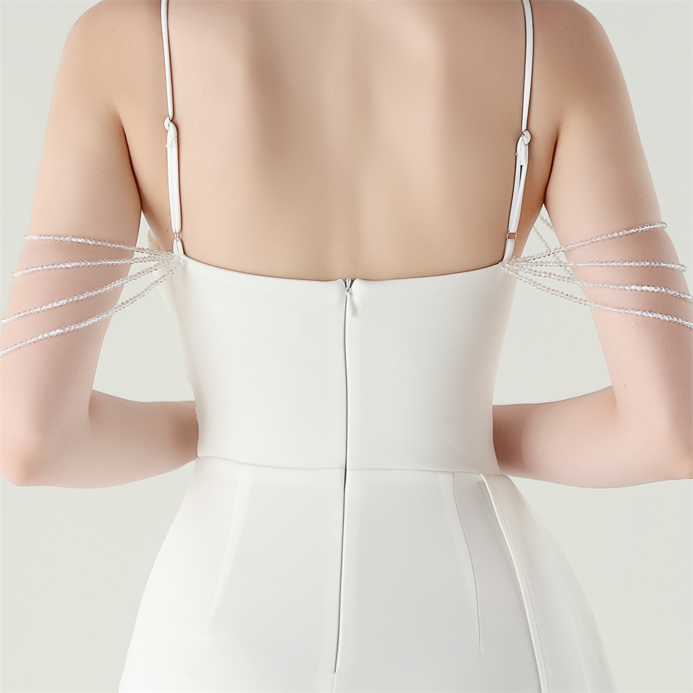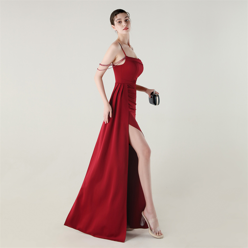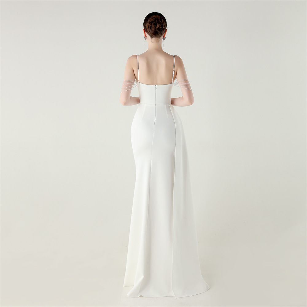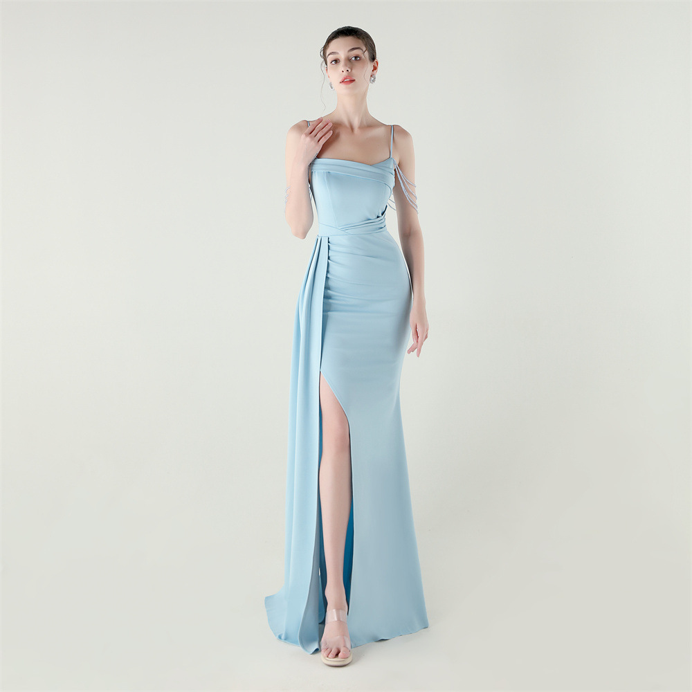 Bandeau Sling Satin Craft Beaded Chain Fishtail Evening Dress Dinner Wedding Ball