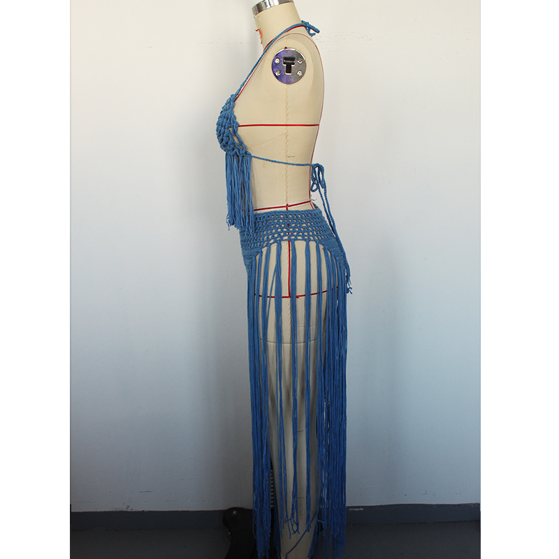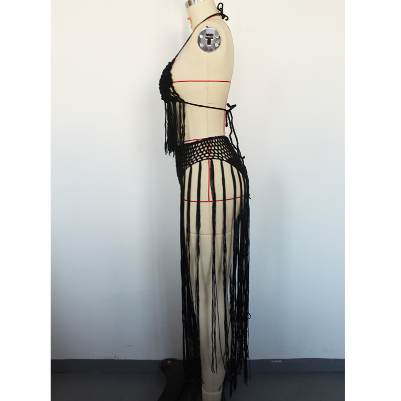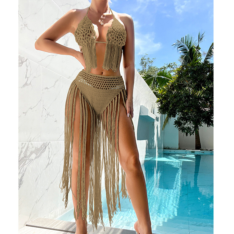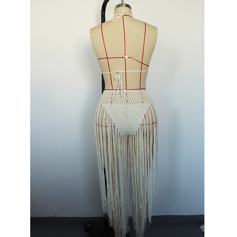 Beach Tourism Hand Crocheting Three Dimensional Floral Tassel Beach Sexy Open Back Swimsuit Bikini Set Crochet hook