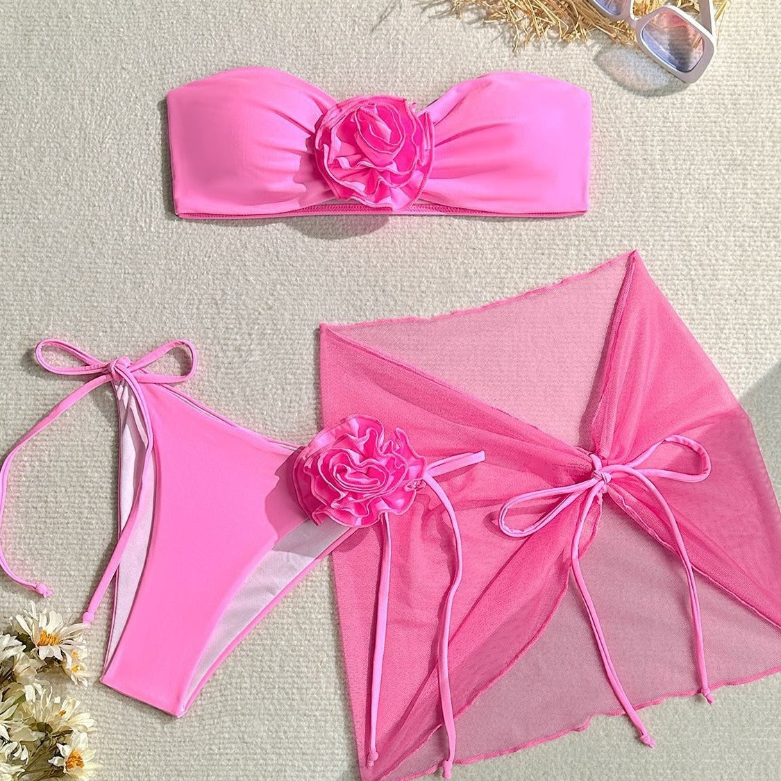 Bikini Sexy Three Piece Set Swimsuit Women Three Dimensional Big Floral Bikini Swimsuit