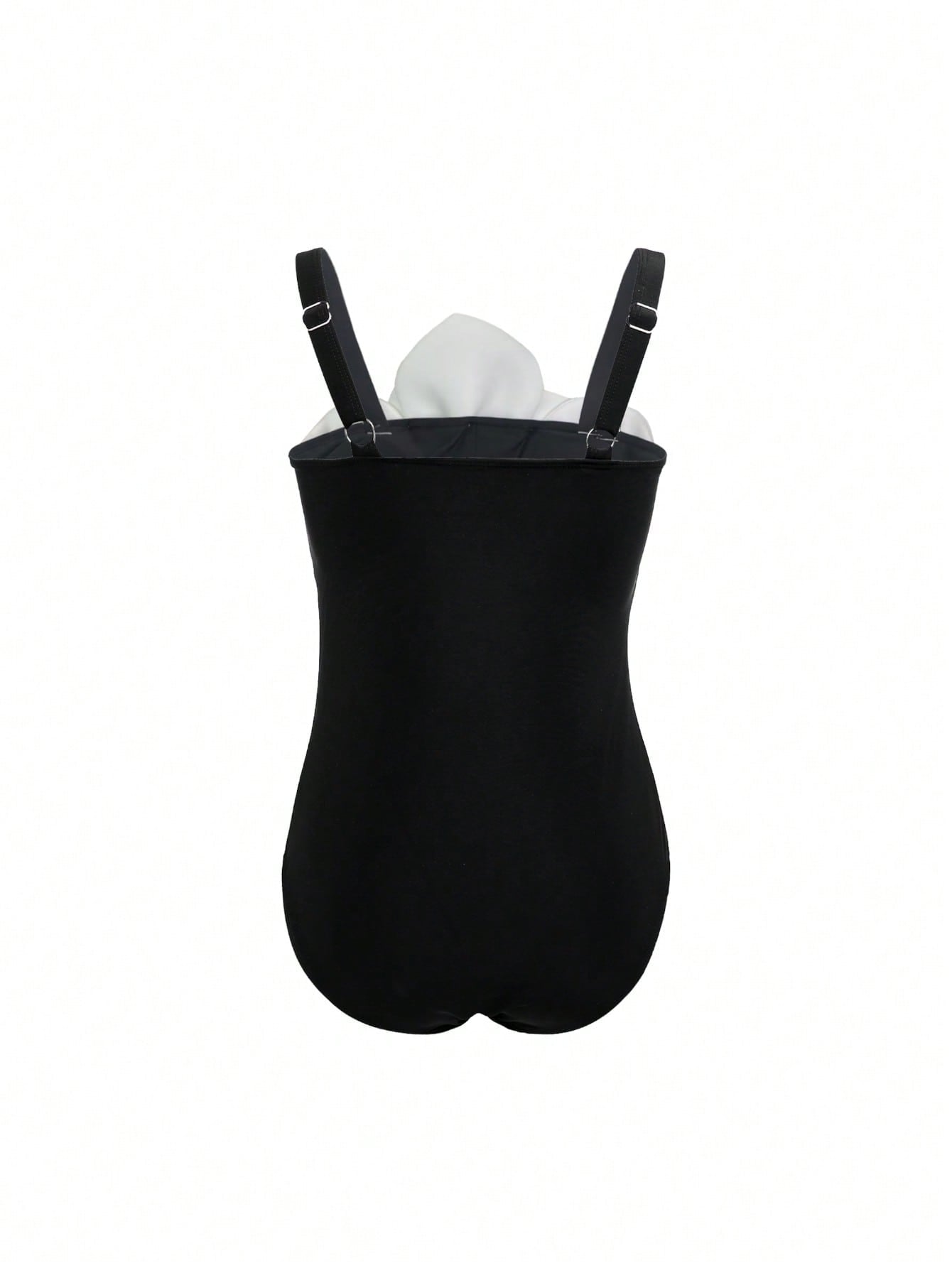 Bikinx Contrast Color Flower Decor Sexy One Piece Swimsuit And Skirt Cover Up