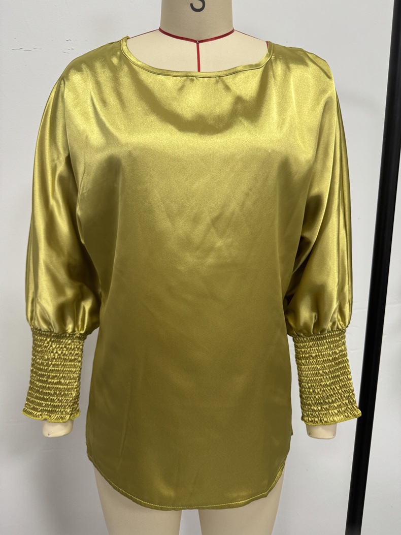 Casual Loose Women T shirt Smocking Batwing Sleeve Solid Color round Neck Top Spring Summer Women