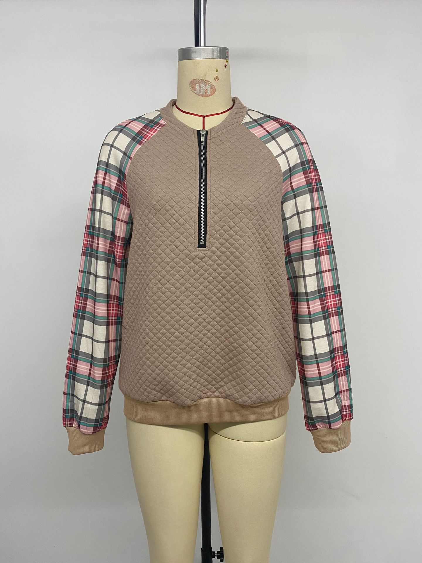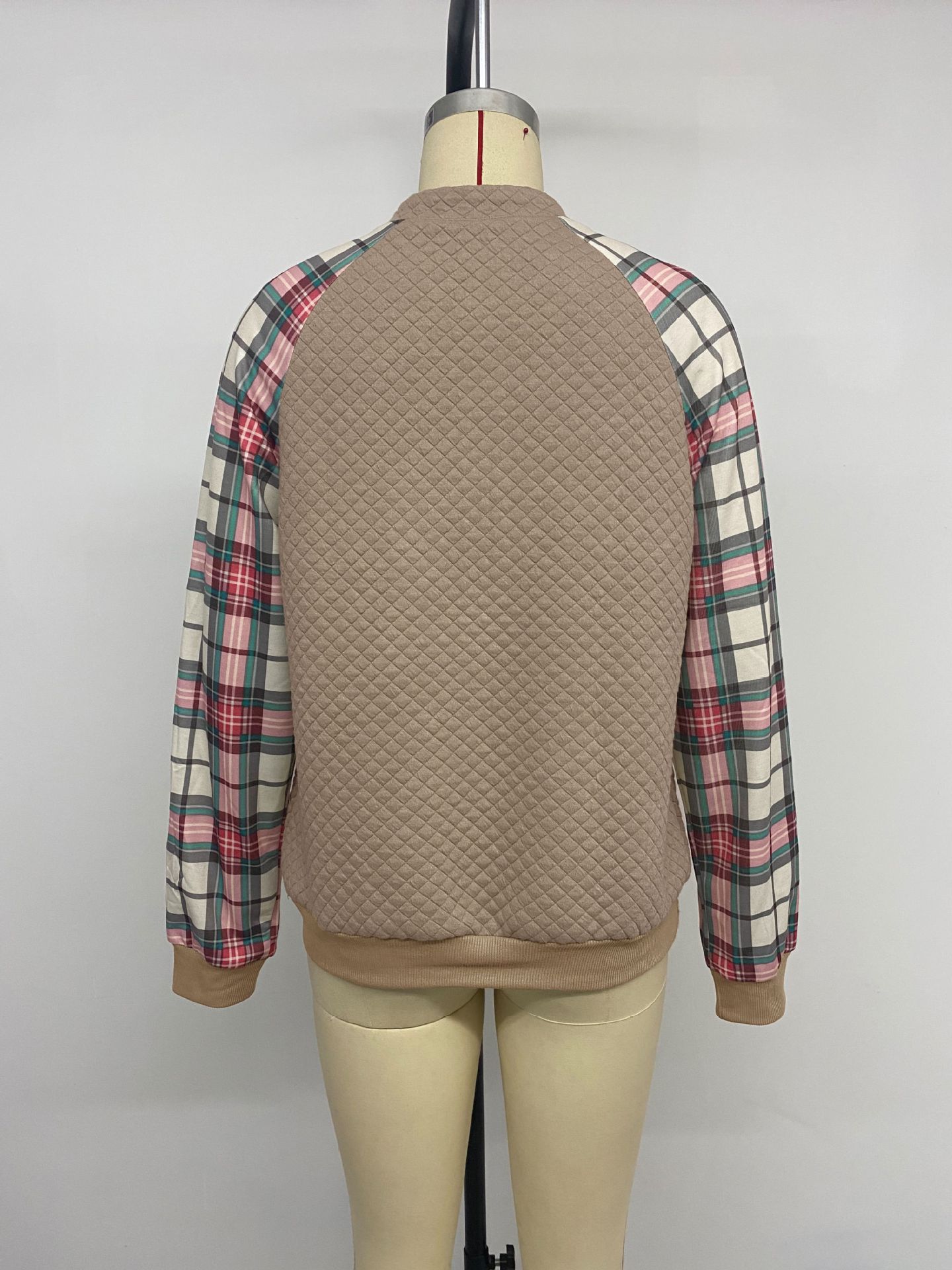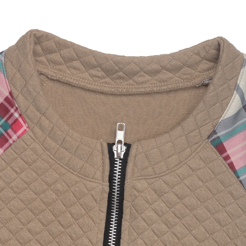 Casual Retro Cardigan Zipper Plaid Stitching Diamond Patterns Fabric Sweatshirts