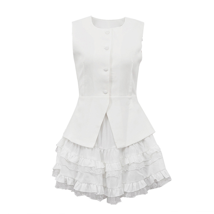 Casual Skirt Outfit Women High Grade Sleeveless Vest Waistcoat Top High Waist Bubble Skirt Two Piece Sets