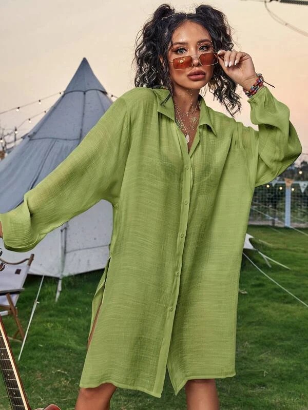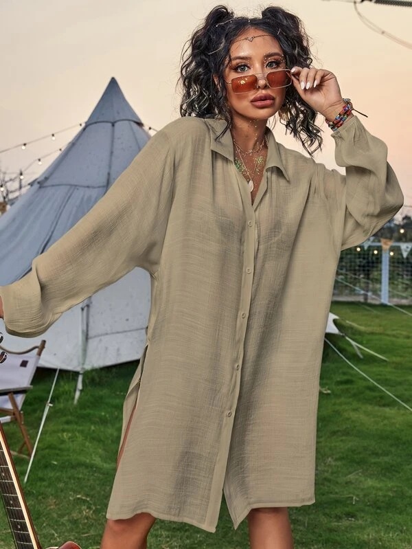 Cotton Long Sleeved Shirt Beach Cover up Vacation Sun Protection Shirt Bikini Swimsuit Outwear Cardigan