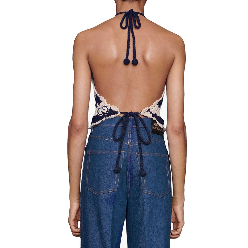 Cotton Thread Hand Crocheting Openwork Knitted Top Bohemian Halter Spaghetti Straps Knitted Beach Vest