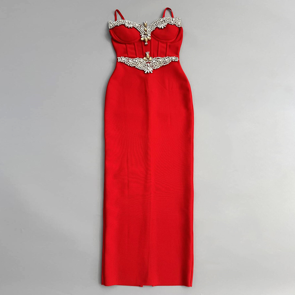 Diamond Strap Bandage Dress Socialite Slim Fit Dress Boning Corset Dress