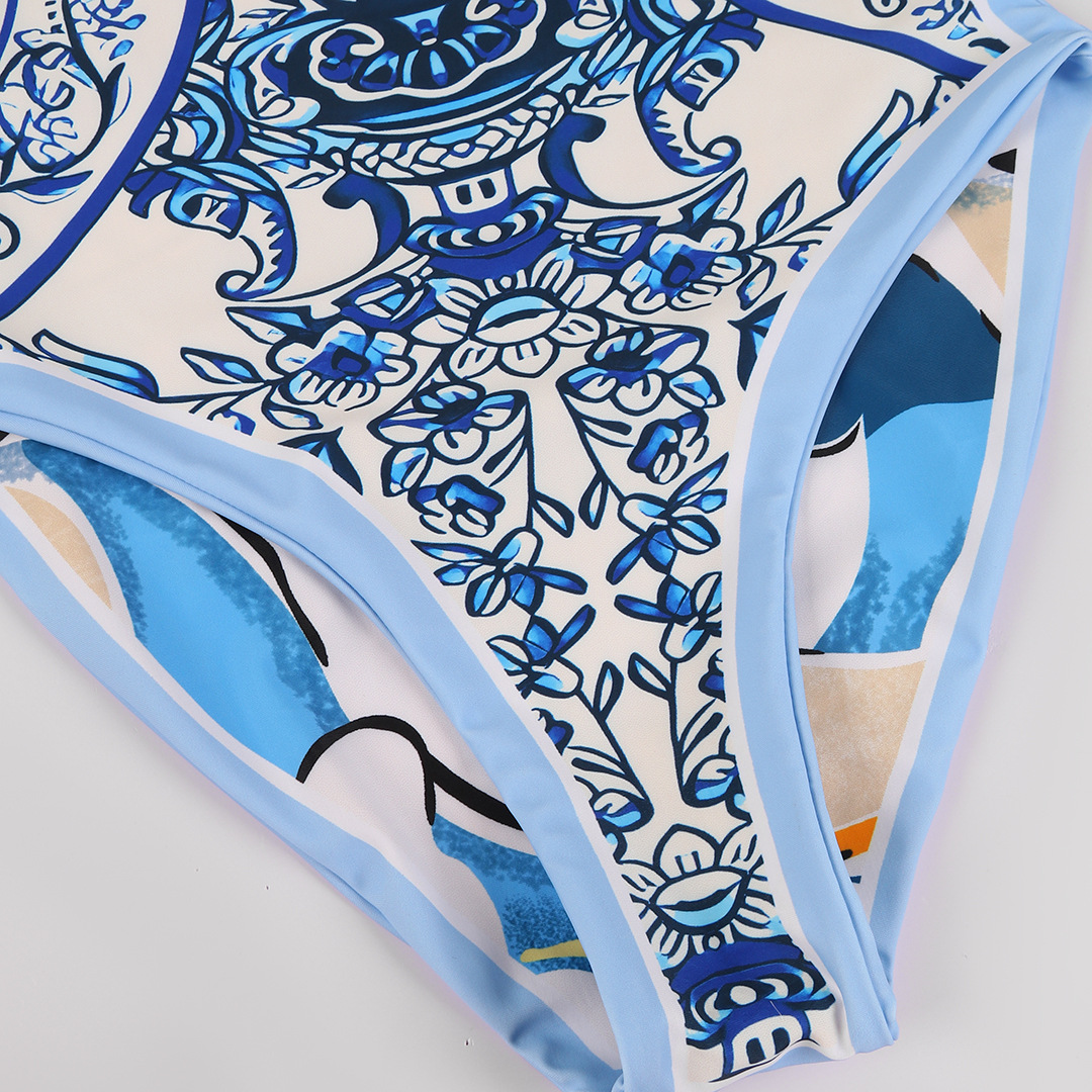 Duplex Printing One Piece Swimsuit Women Tube Top One Piece Strap Swimsuit