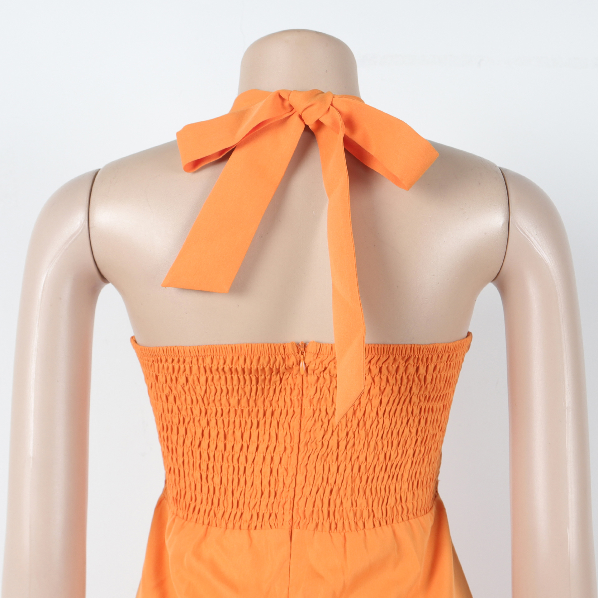 Elegant Office Solid Color Twist Decoration Smocking Halter Tied Dress