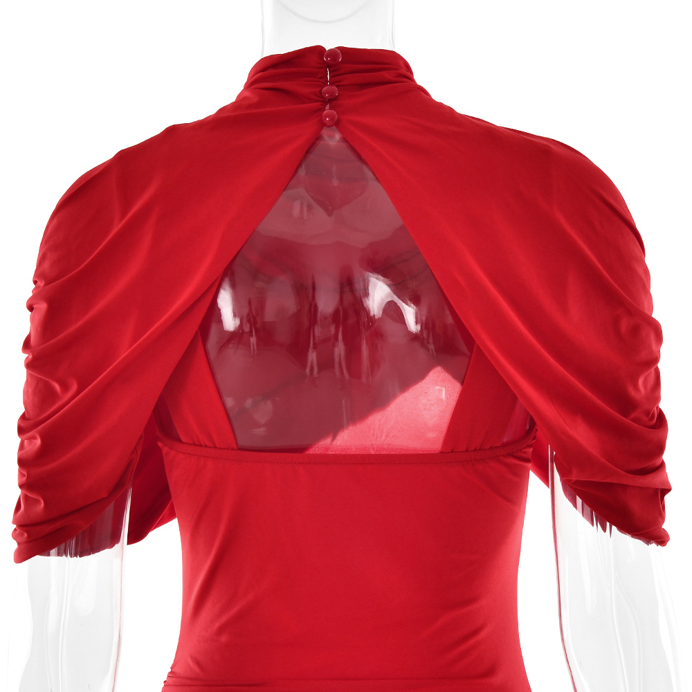 Elegant Slim Pleated Dress Sexy Backless Sheath Women Dress