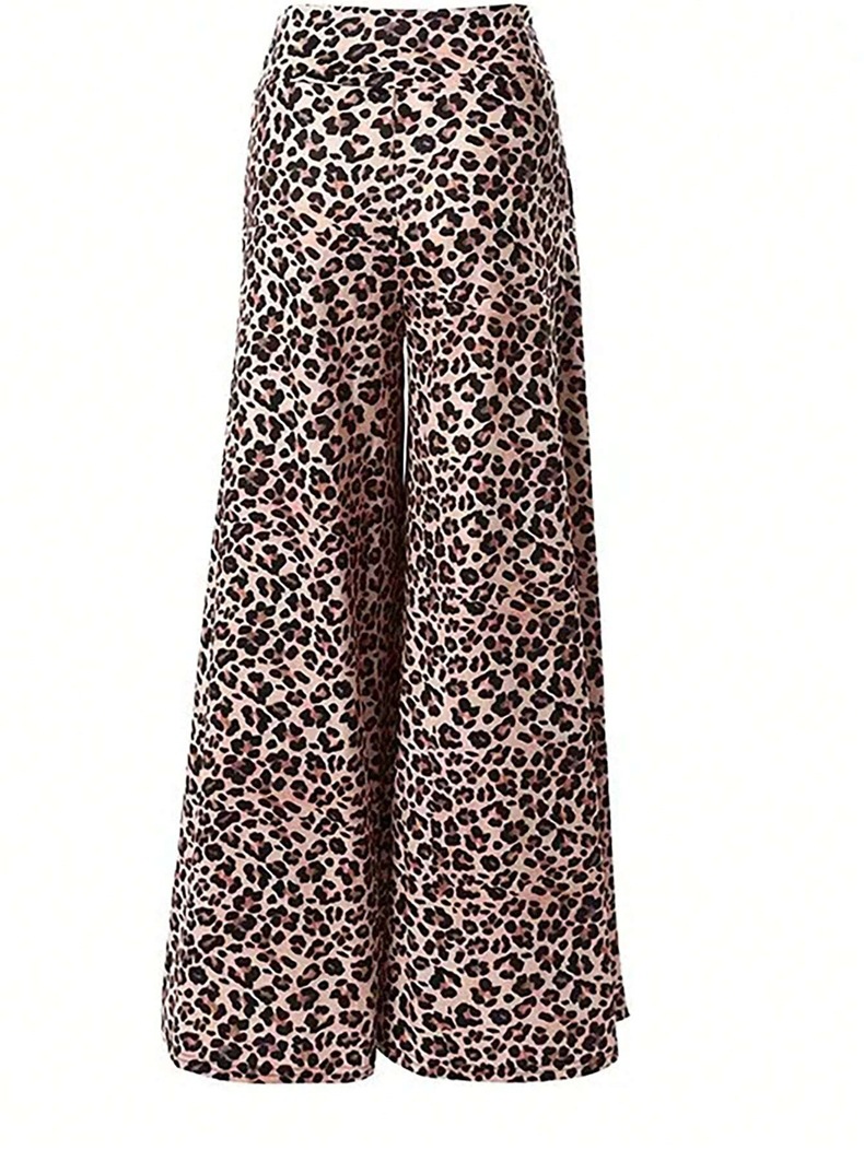 Fall Women Clothes Early Autumn Leopard Print Wide Leg Pants Loose High Waist Satin Long Pants