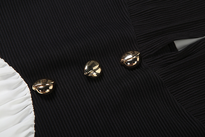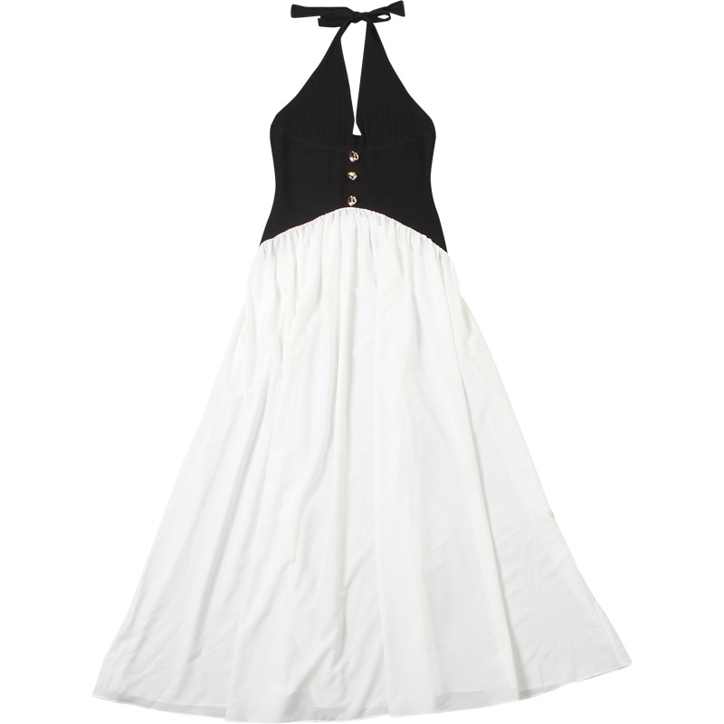 Fall Women Clothing French Sexy Halter Backless Contrast Color Fastener Decoration Dress