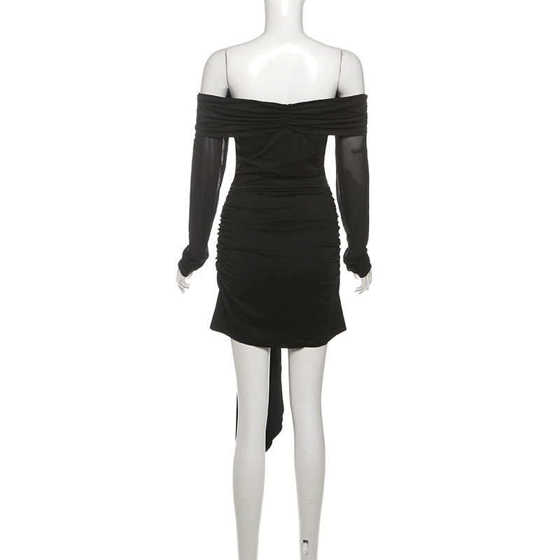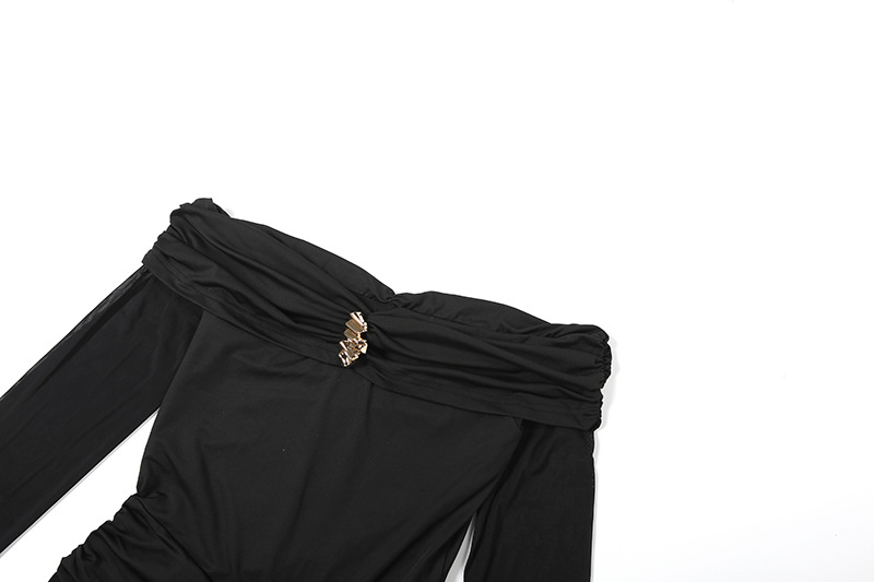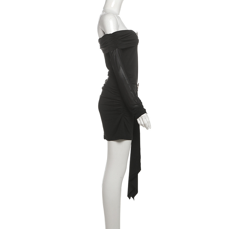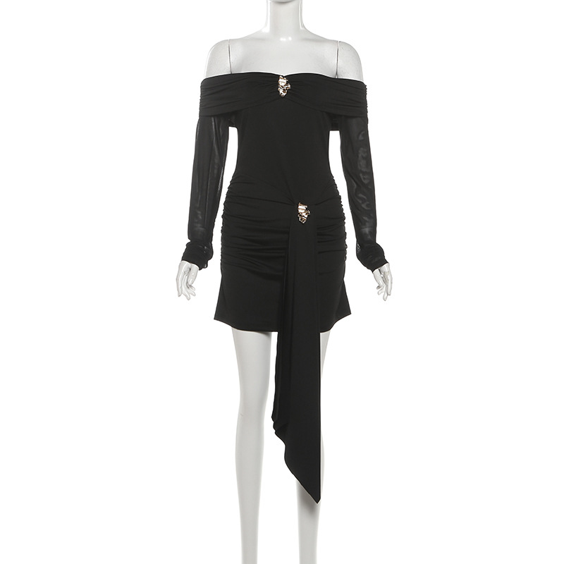 Fall Women Clothing Sexy Sexy Sheath Semi See through off Shoulder Backless Metal Decorative Dress Women