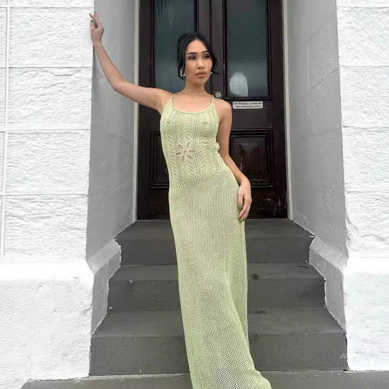 Floral Cutout Sexy Tight Beach Dress With Suspenders Backless Dress Spring Summer