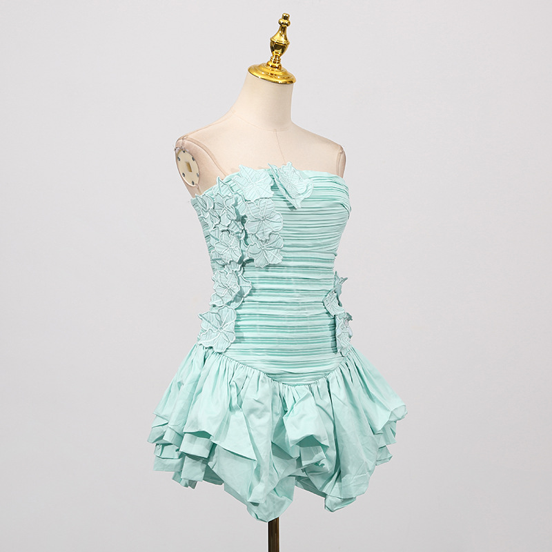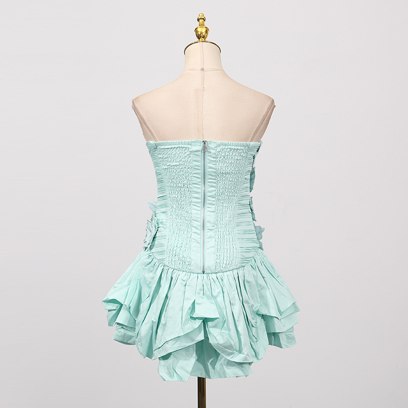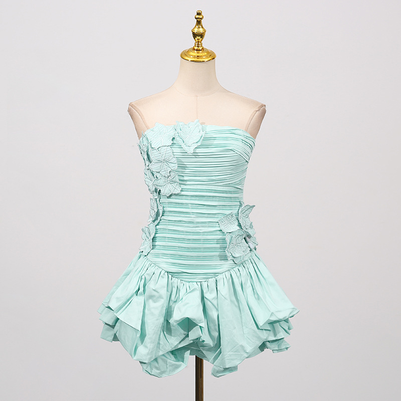 Floral Dress Women Summer Tube Top Three Dimensional Floral Puffy Dress