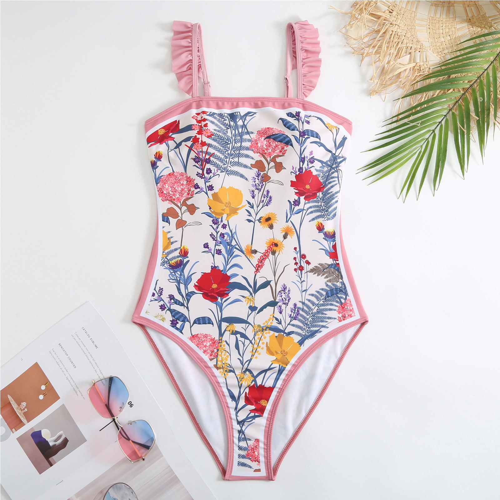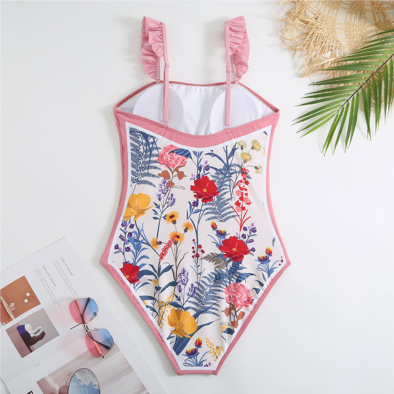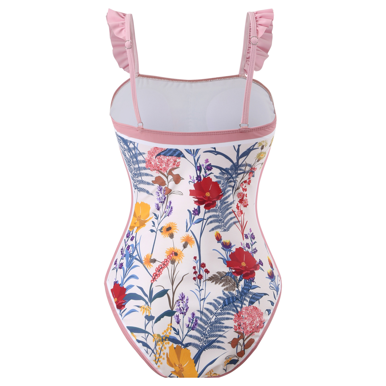 Flying Edge One Piece Women Swimwear European, French Retro Cover Belly Slimming Swimsuit Chiffon Beach Dress