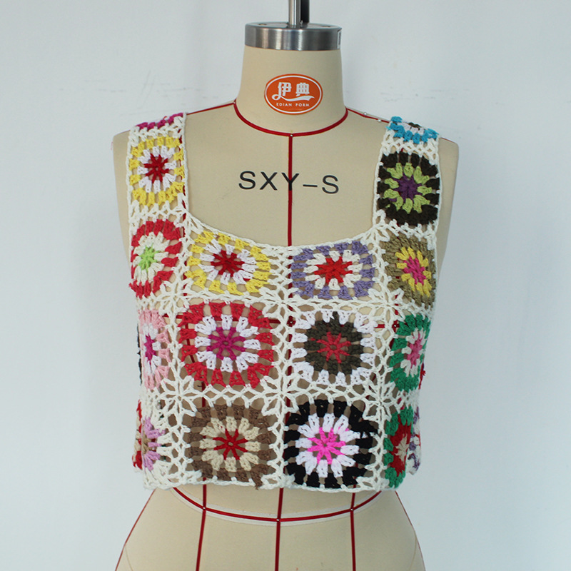 Hand Hook Floral Block Knitted Sling Lady Sexy Seaside Swimwear Vacation Bikini Small Sling Crochet hook