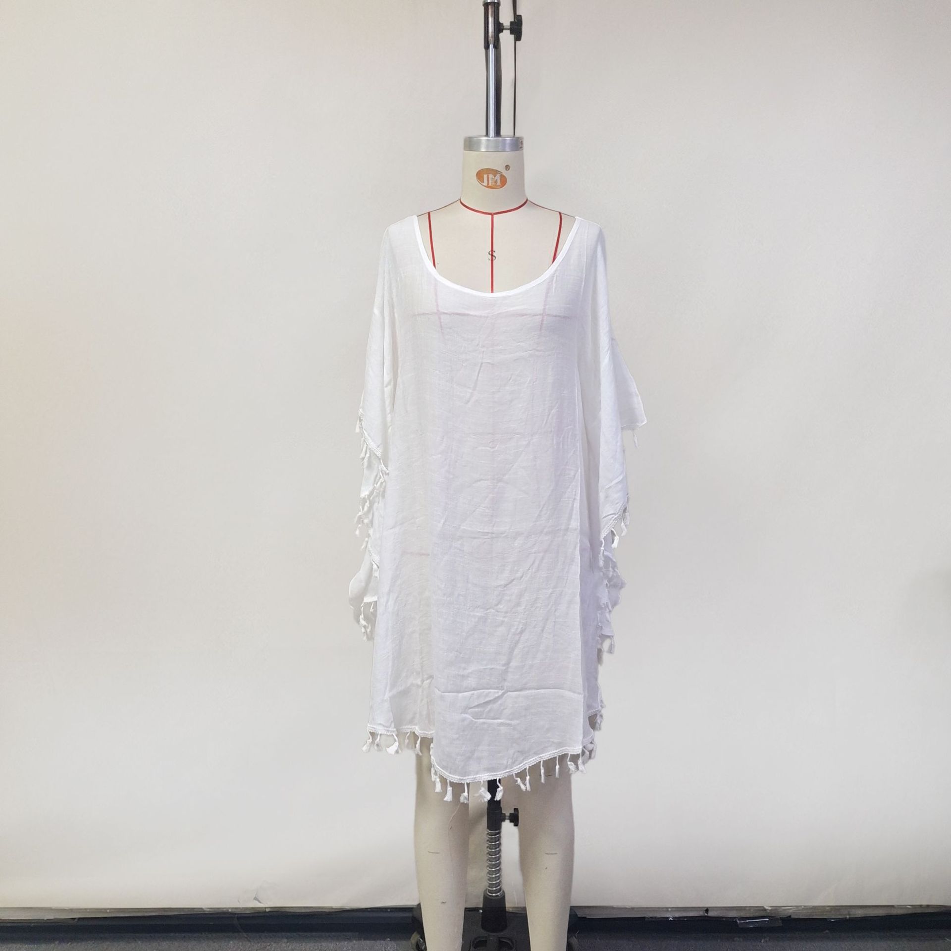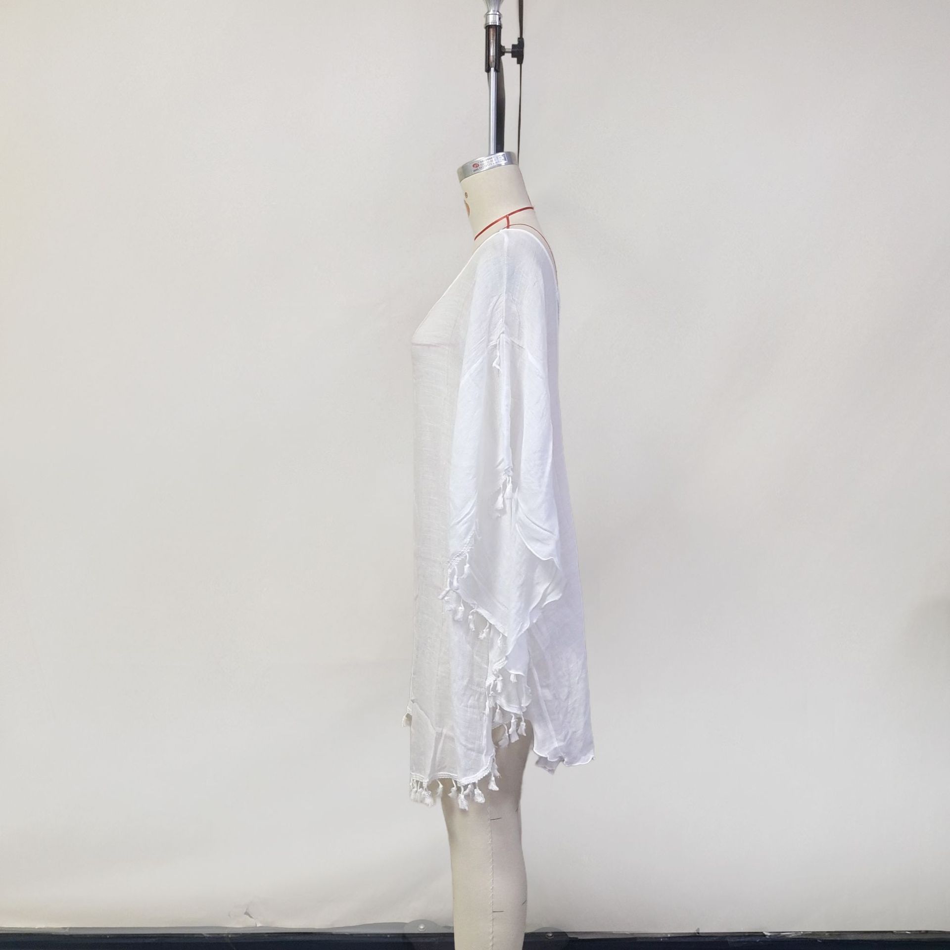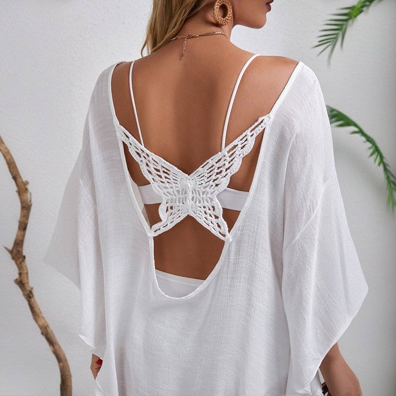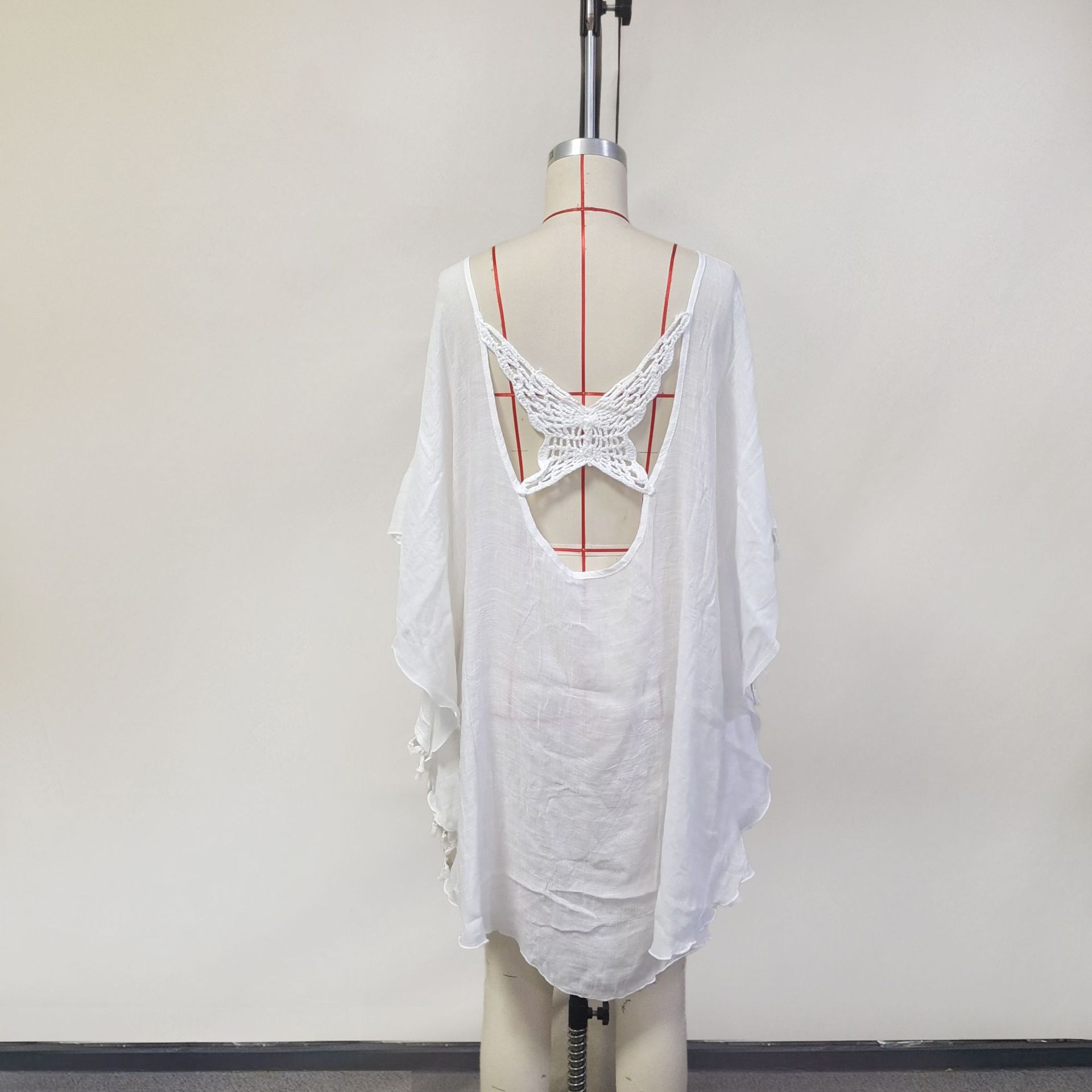 Hand Hook Floral Stitching Tassel Beach Cover up Hollow Out Cutout Butterfly Loose Beach Vacation Sun Protective Clothing