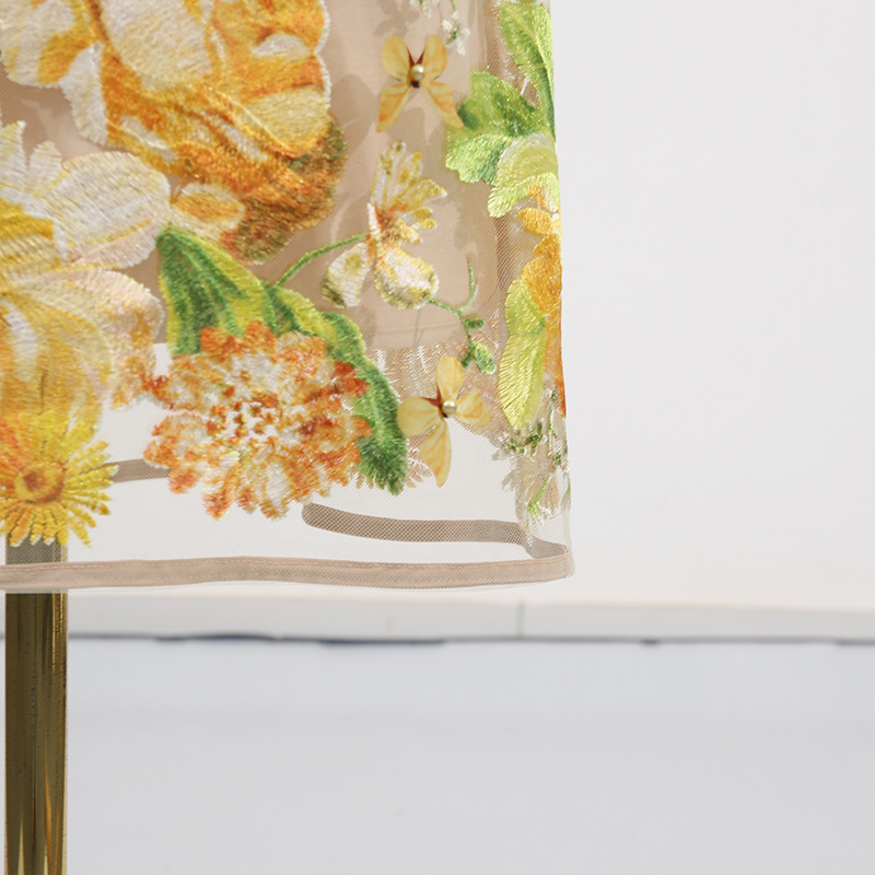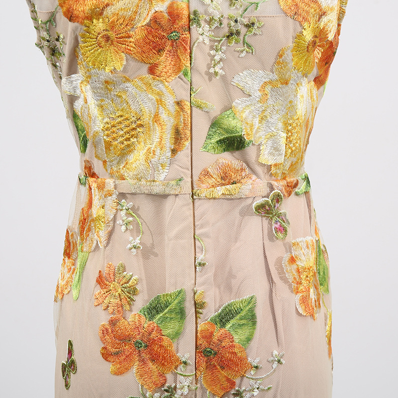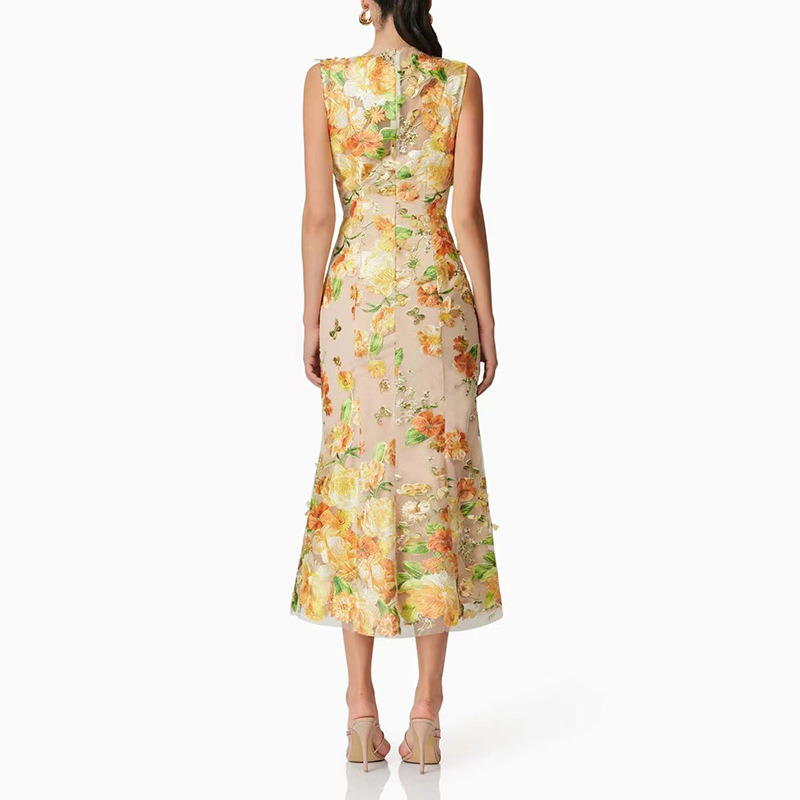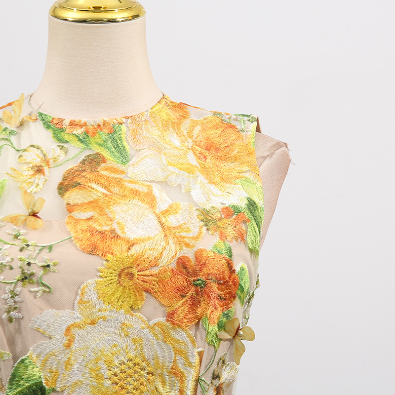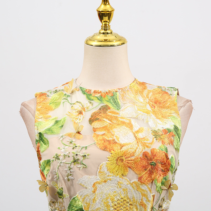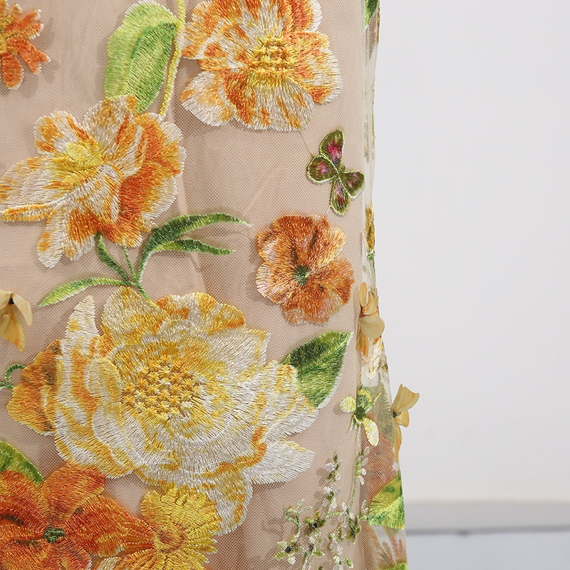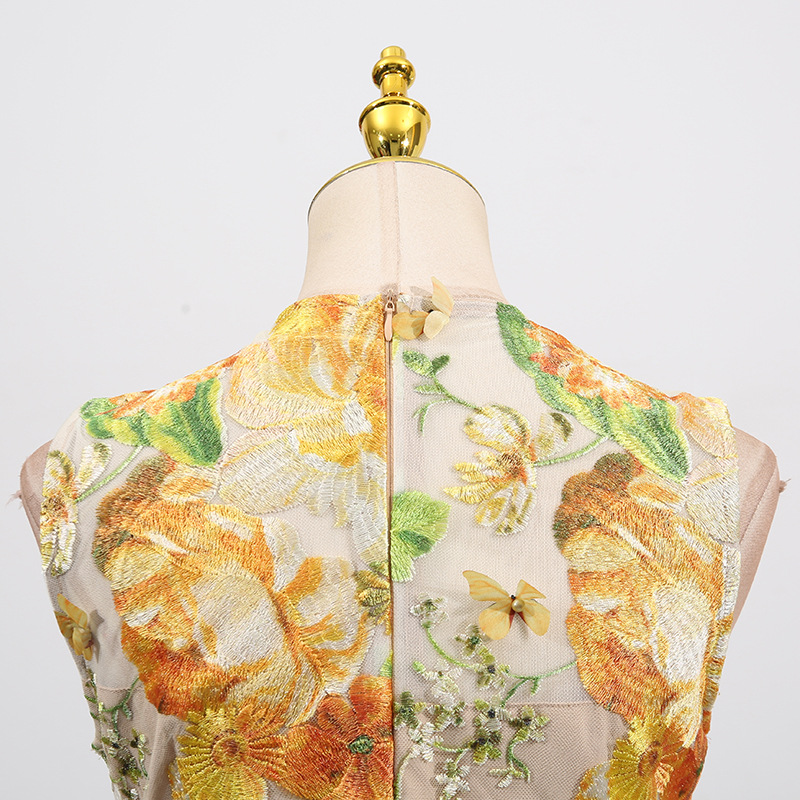 Heavy Industry High Sense Dress Color Embroidery Three Dimensional Floral Slim Fit Figure Flattering Maxi Dress