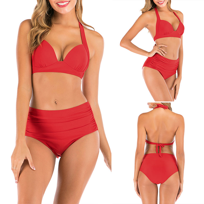 High Waist Bikini Set Halter Bathing Suit Woman Swimsuit Women Plus Size Bikini Floral Print Swimwear Women
