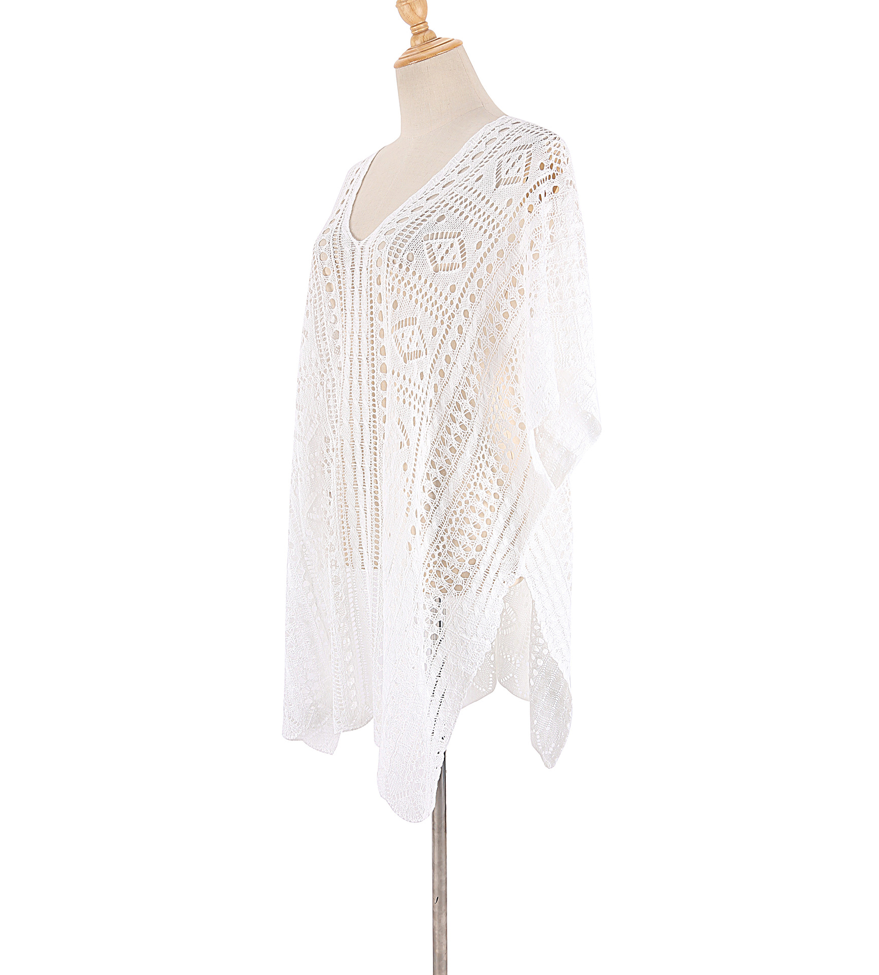 Knitted Hollow Out Cutout out Beach Jacket-Head Sexy Beach Cover Up Vacation Swimsuit Outerwear Sun Protection Clothing Women