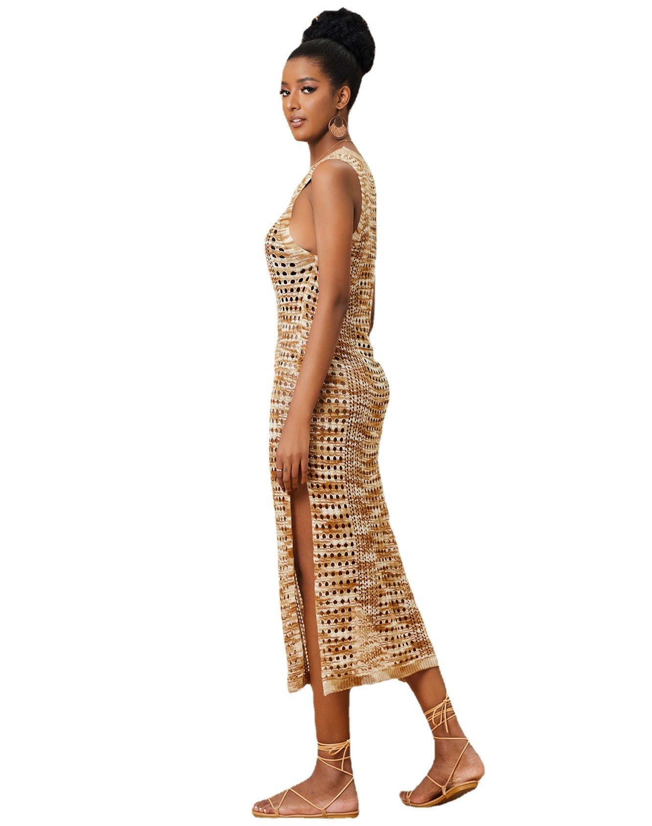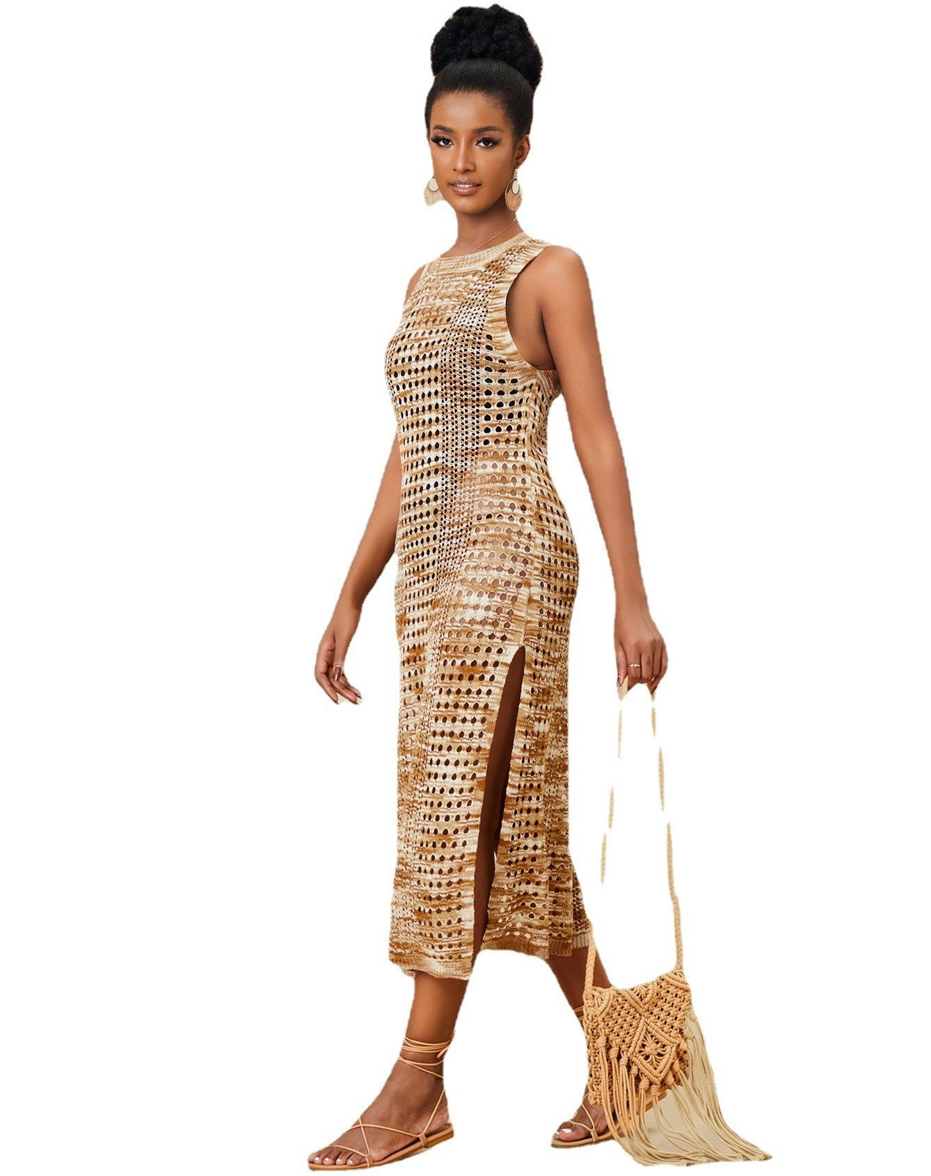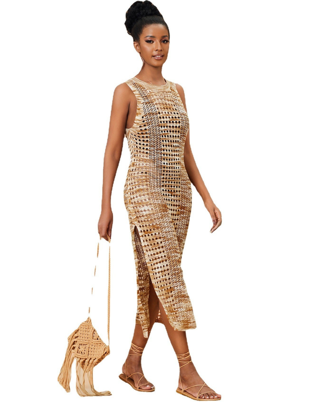 Knitted Hollow Out Cutout Vest Skirt Beach Cover Up Sexy Vacation Long Skirt Beach Cover Up Crochet hook