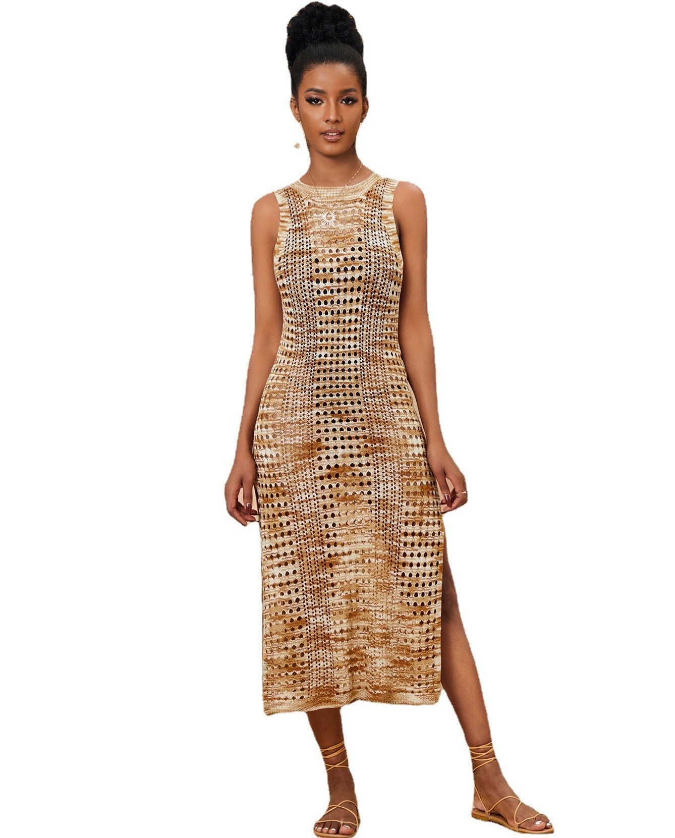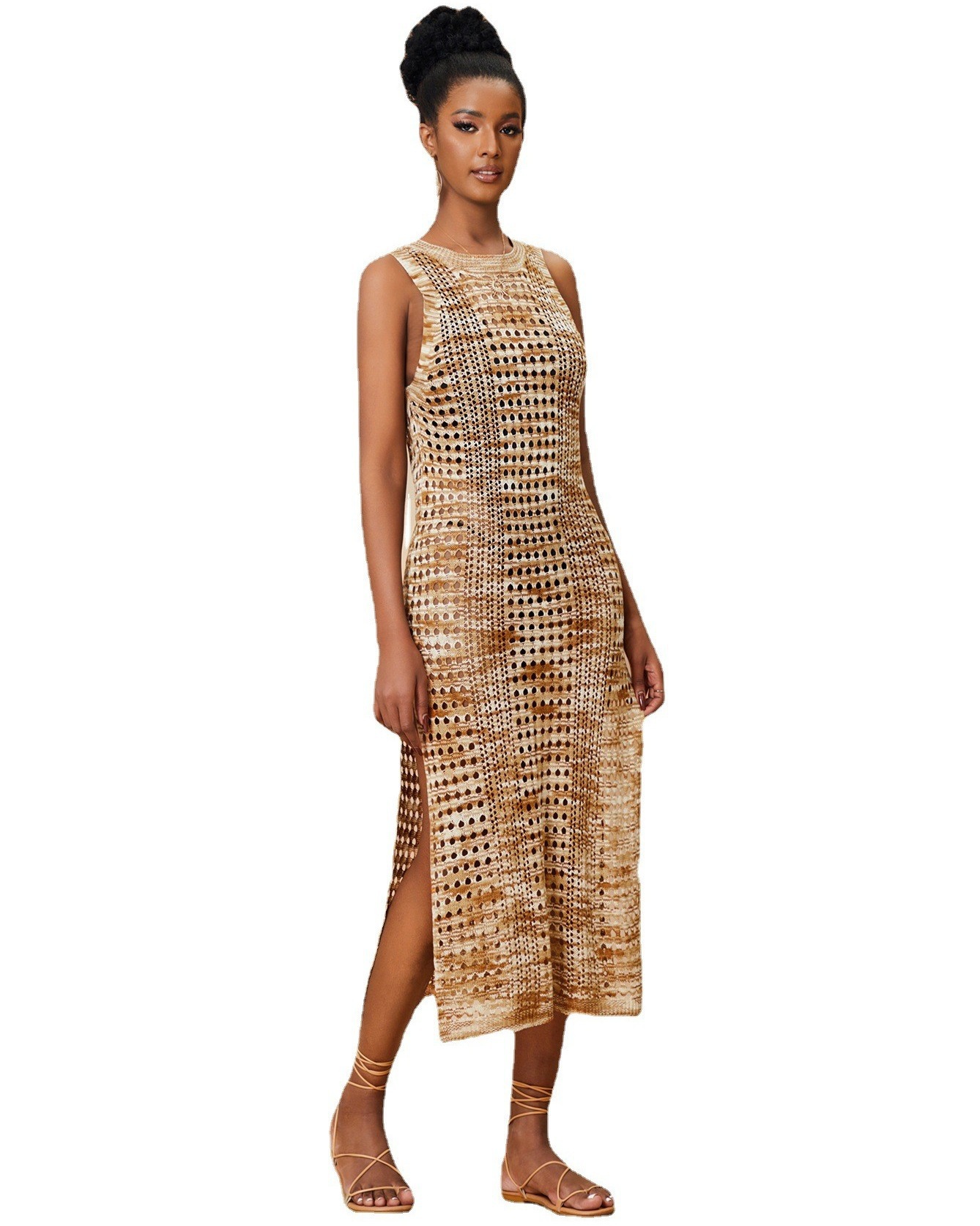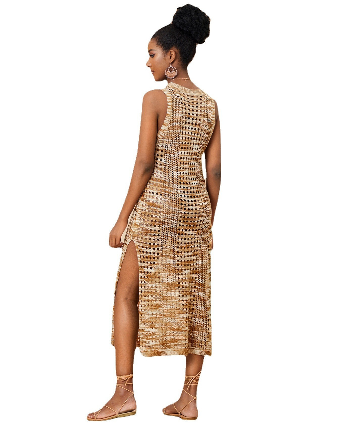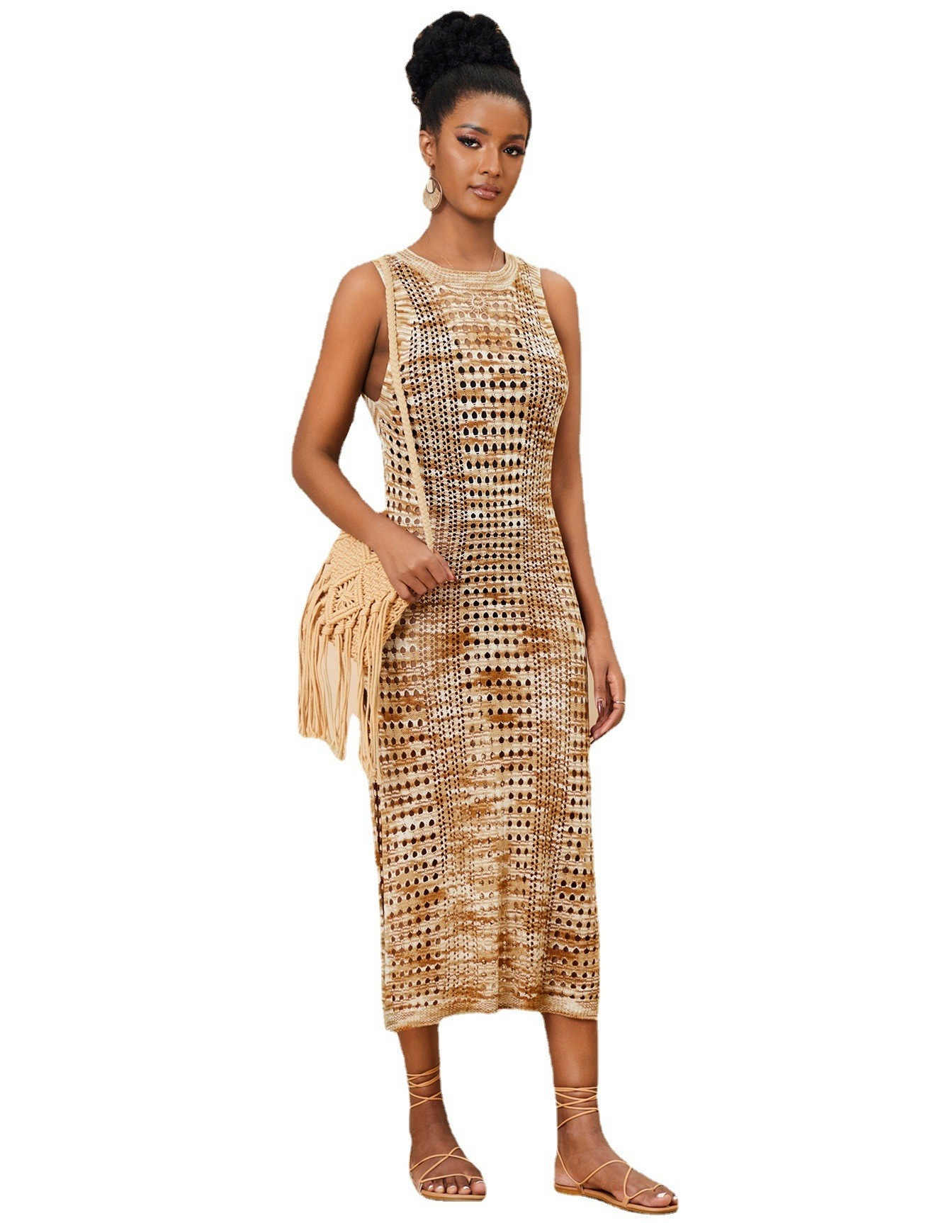 Knitted Hollow Out Cutout Vest Skirt Beach Cover Up Sexy Vacation Long Skirt Beach Cover Up Crochet hook