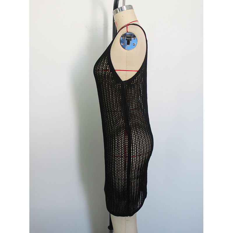 Knitted Hollow Out Vest Short Sexy Mid Length Strap Tight Dress Beach Cover up Swimsuit Bikini Cover up Crochet hook