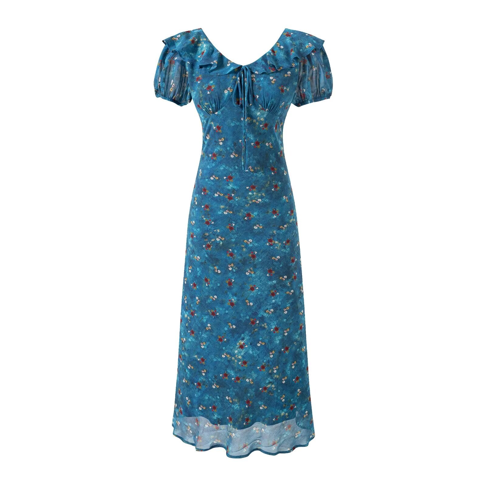 Lace up Light Purple Ruffled Maxi Dress Women Summer Tight Waist Slim Fit Dress