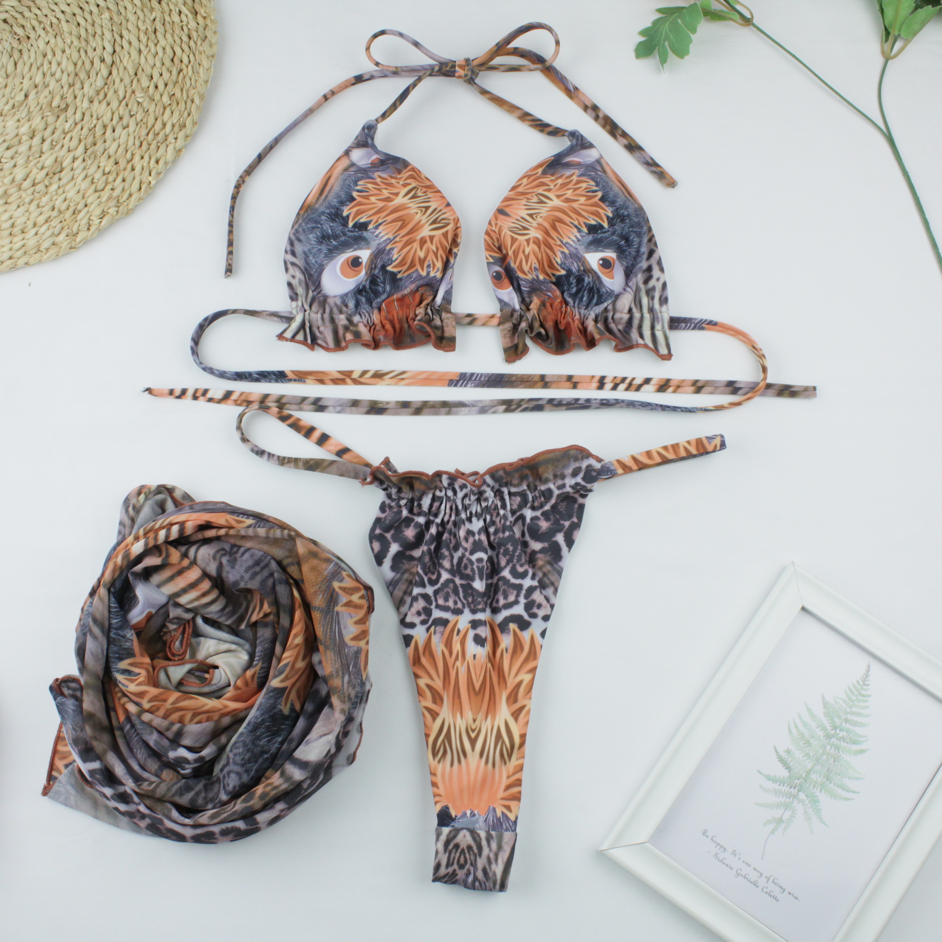 Leopard Bikini Print Digital Printed Sexy 3 Piece Swimsuit