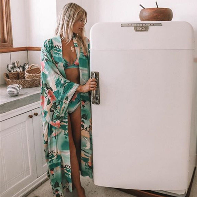 Loose Beach Beach Cover Up Sun Protection Shirt Mid-Length Cardigan Swimsuit Dress Women