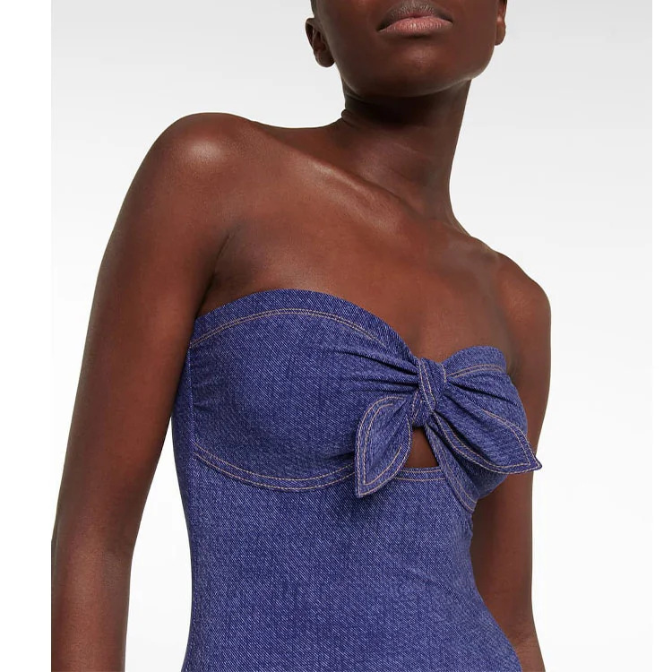 【MOQ-5 packs】 Cowboy Siamese Women Swimsuit European French Retro Cover Belly Slimming Swimsuit Vacation Beach Dress