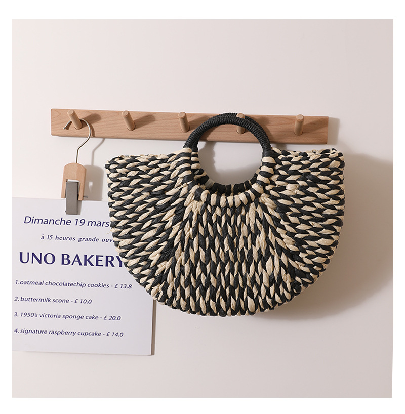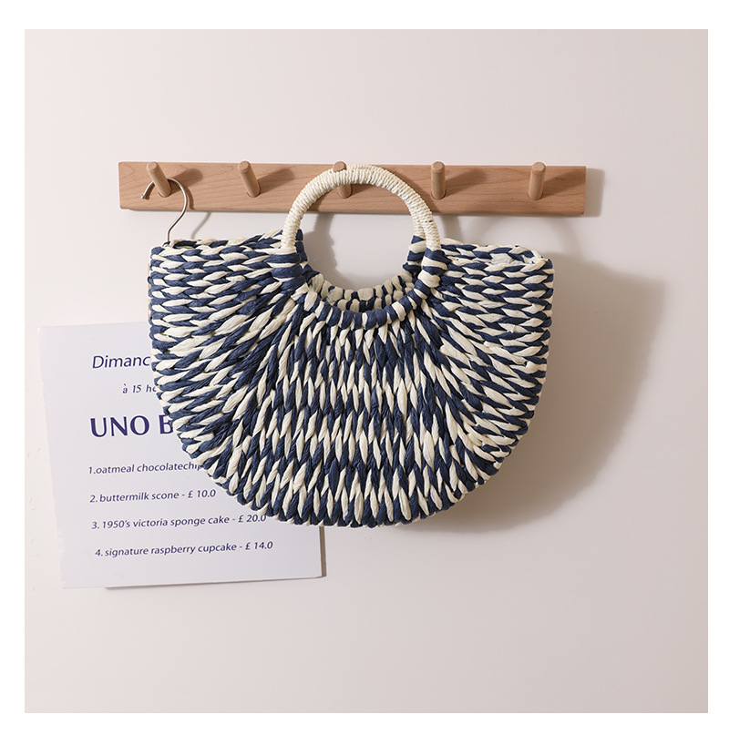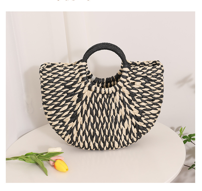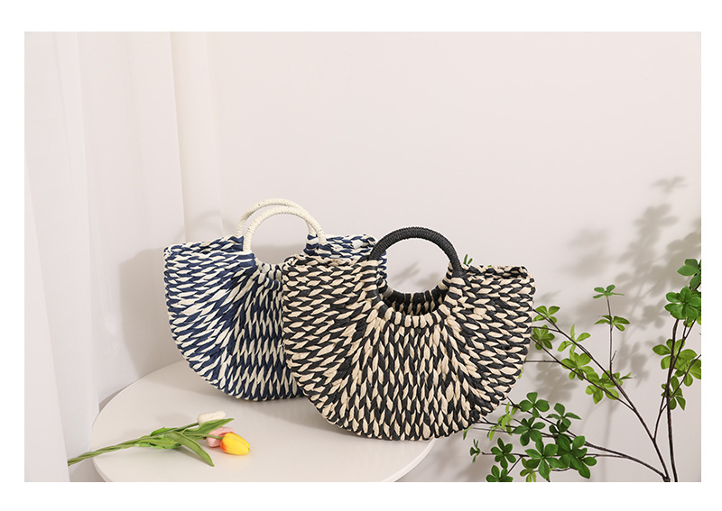 Niche Semicircle Portable Straw Weaved Bag Retro Color Hand Carrying Straw Bag Woven Bag Women Seaside Vacation Beach Bag