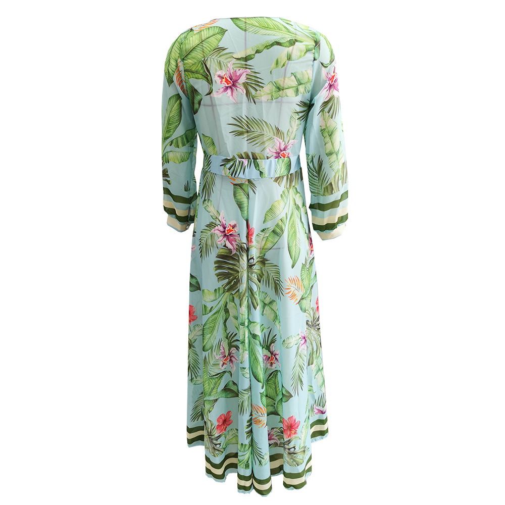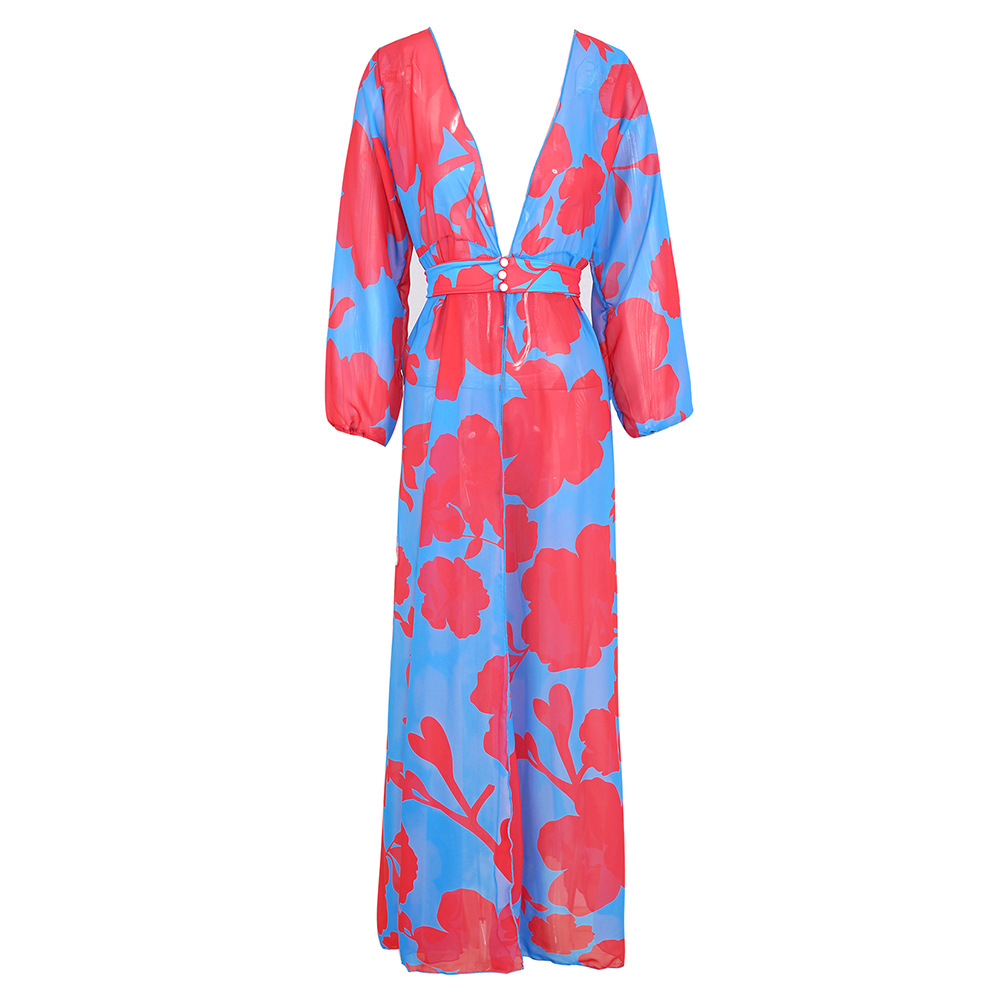 One Piece Swimsuit Cardigan Women Long Sleeve Printed Bikini Cover Up Robe