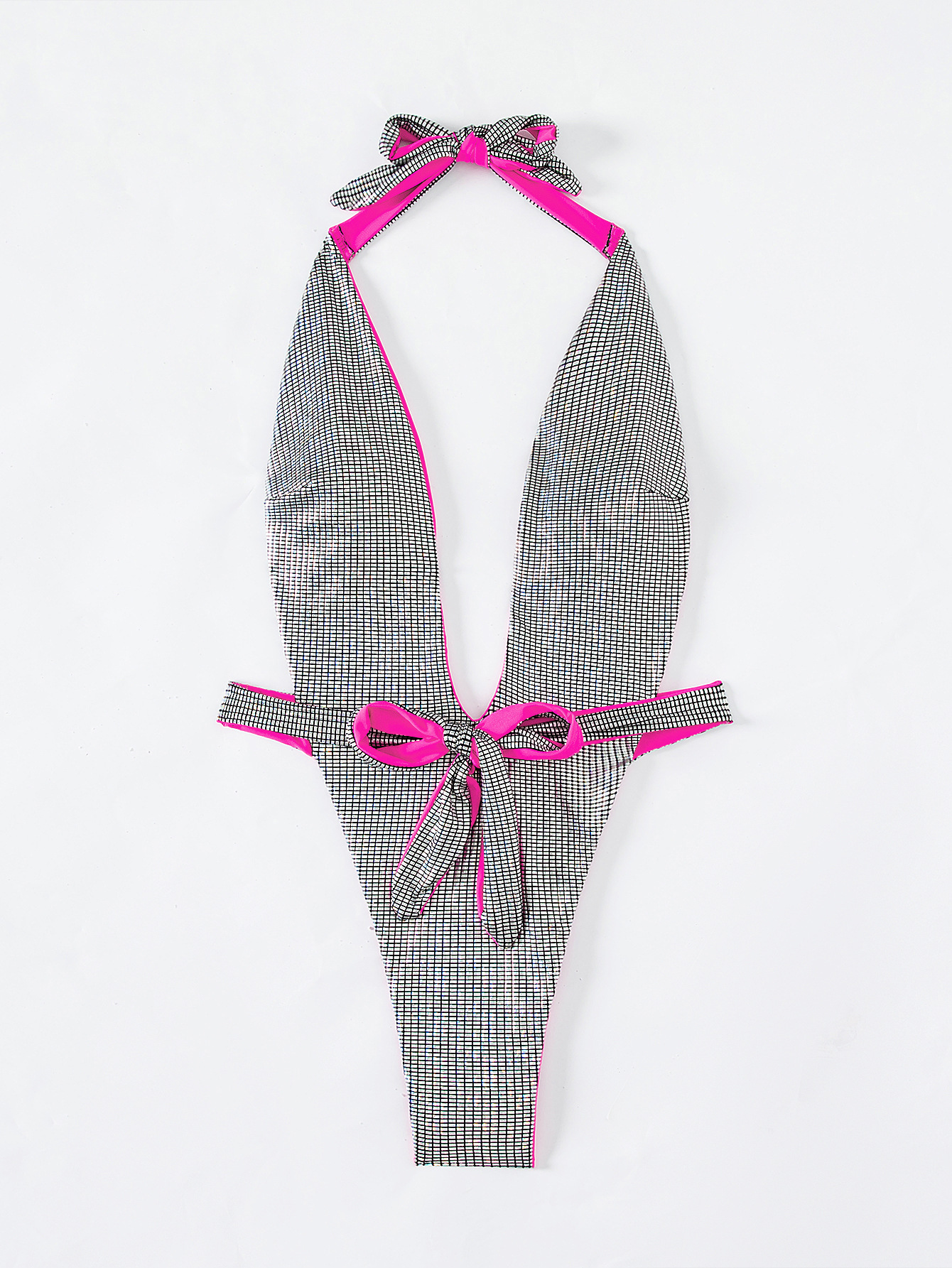One Piece Women Swimsuit Sexy Bronzing Lace up Bikini Halter