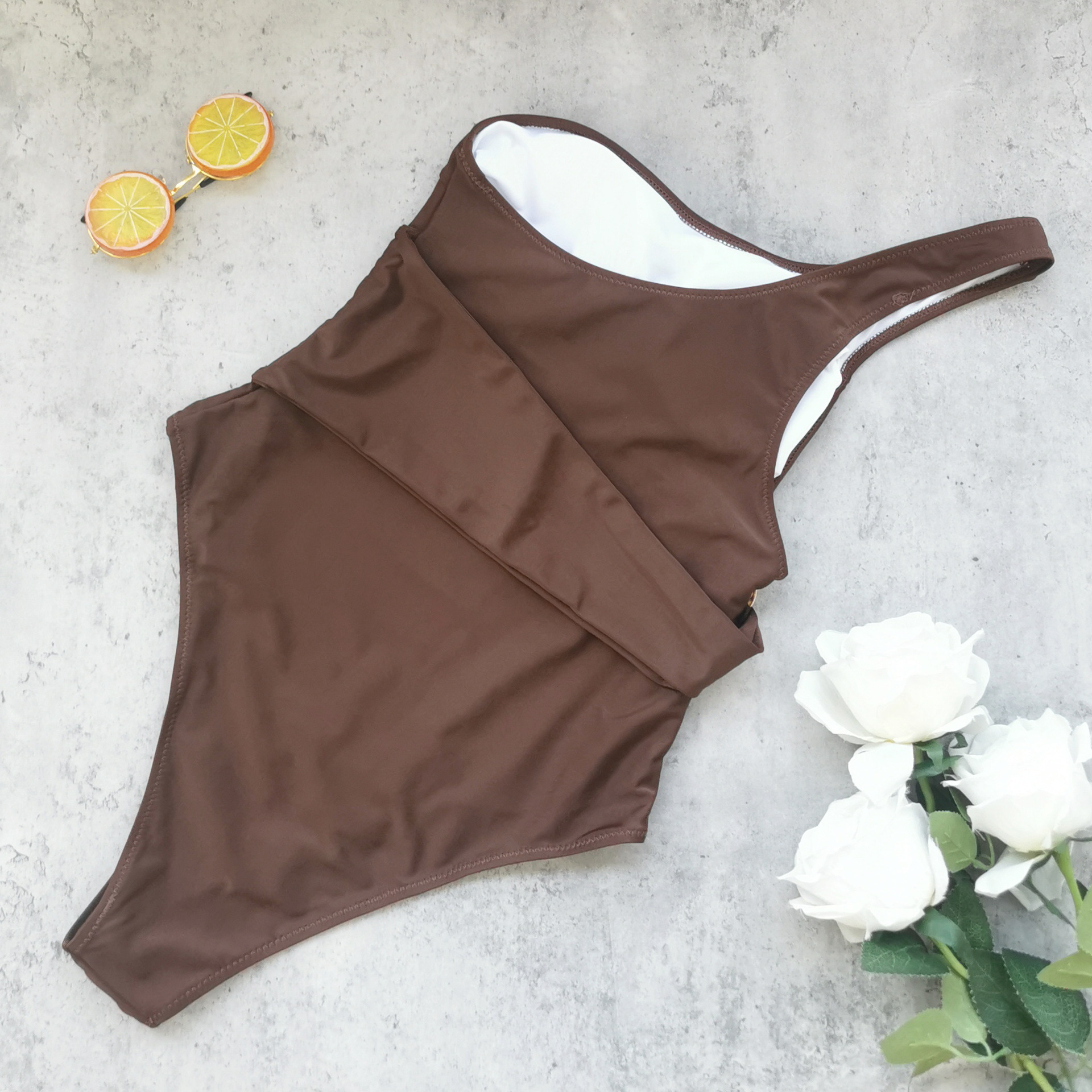 One Shoulder One Piece Swimsuit Women Solid Color Briefs